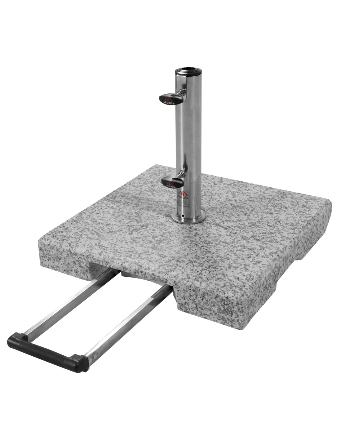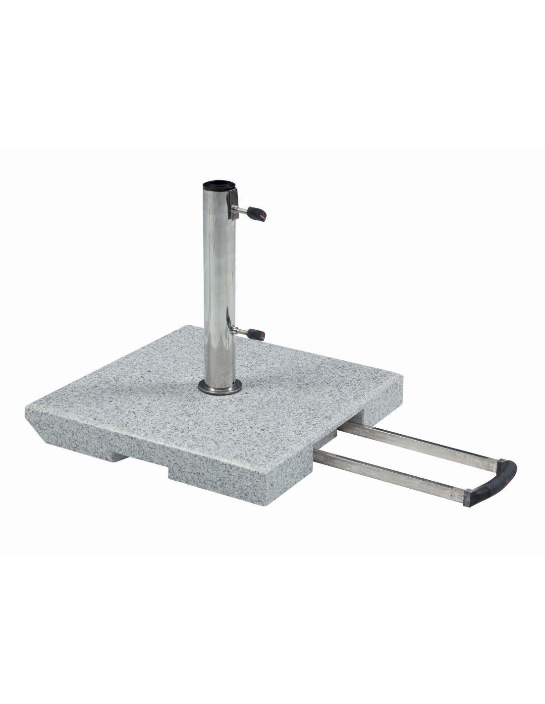 Vyroben ze světle šedé žuly s 2 koly a rozšiřitelnou trolejovou rukojetí. Vhodný pro snadnou přepravu. Nerezová tyč má několik redukčních kroužků a umožňuje použití průměrů slunečníku do max. 48 mm (od 25–48 mm). Slunečník se kotví do tyče (trubka z nerezové oceli) pomocí dvou pojistných šroubů. Žula je velmi odolná vůči povětrnostním vlivům a proto může být využitá celý rok.