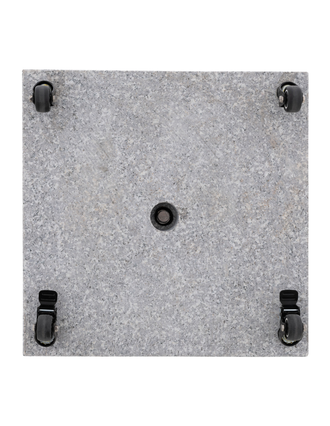 Žulový stojan pro slunečníky myZone je vybavený 4 kolečky, což umožňuje jej snadno a pohodlně přesouvat, kam je zrovna třeba. Stojan je určený pro středně velké slunečníky s průměrem střechy až do 300 cm. Odolnou a tvrdou desku z leštěné žuly doplňuje trubka z černé nerezové oceli. K zajištění maximální stability slunečníku ve stojanu slouží 2 zajišťovací šrouby. Včetně redukčních kroužků, umožňujících použití pro průměry tyče slunečníku od 32 do 60 mm. Žula je mimořádně tvrdá a odolná, takže podstavec je absolutně odolný vůči vlivům počasí.