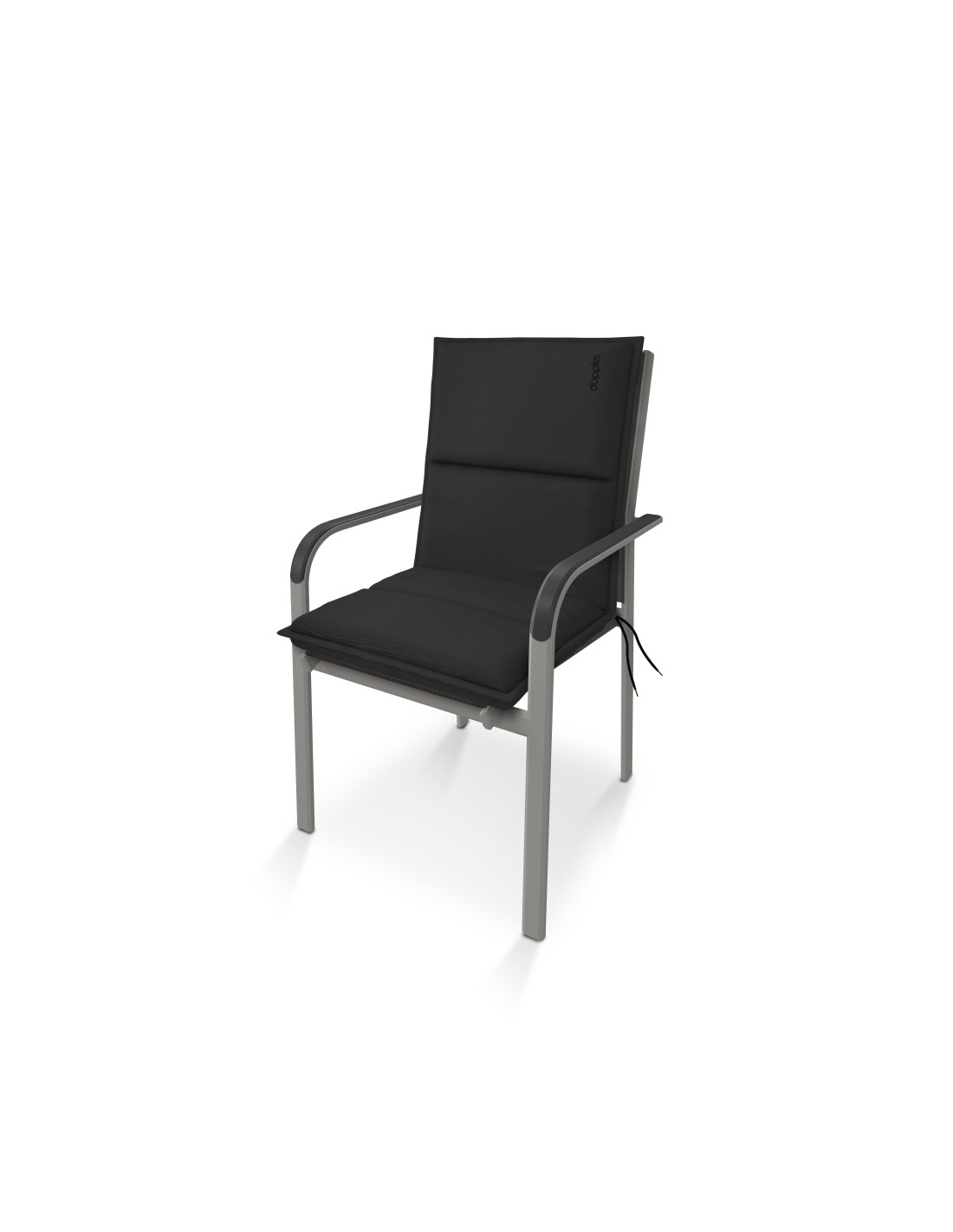 Polstr se střední opěrkou na zahradní nábytek řady CITY. Elegantní polstr v módním odstínu, zdobený výšivkou Doppler na opěradle. Polstr je v provedení s obšitým lemem, prošitý 1x v sedáku, 1x v opěradle. Uchycení je pomocí posuvné spony. Díky sponě si můžete nastavit velikost dle rozměru a druhu židle, spona je pevná a nevytahuje se. Upevnění sedáku je pomocí dvou tkaniček v ohybu polstru. Síla polstru je optimální pro všechny druhy židlí. Provedení je vhodné i do náročných podmínek kaváren, zahrádek a restaurací. Potah je nesnímatelný.