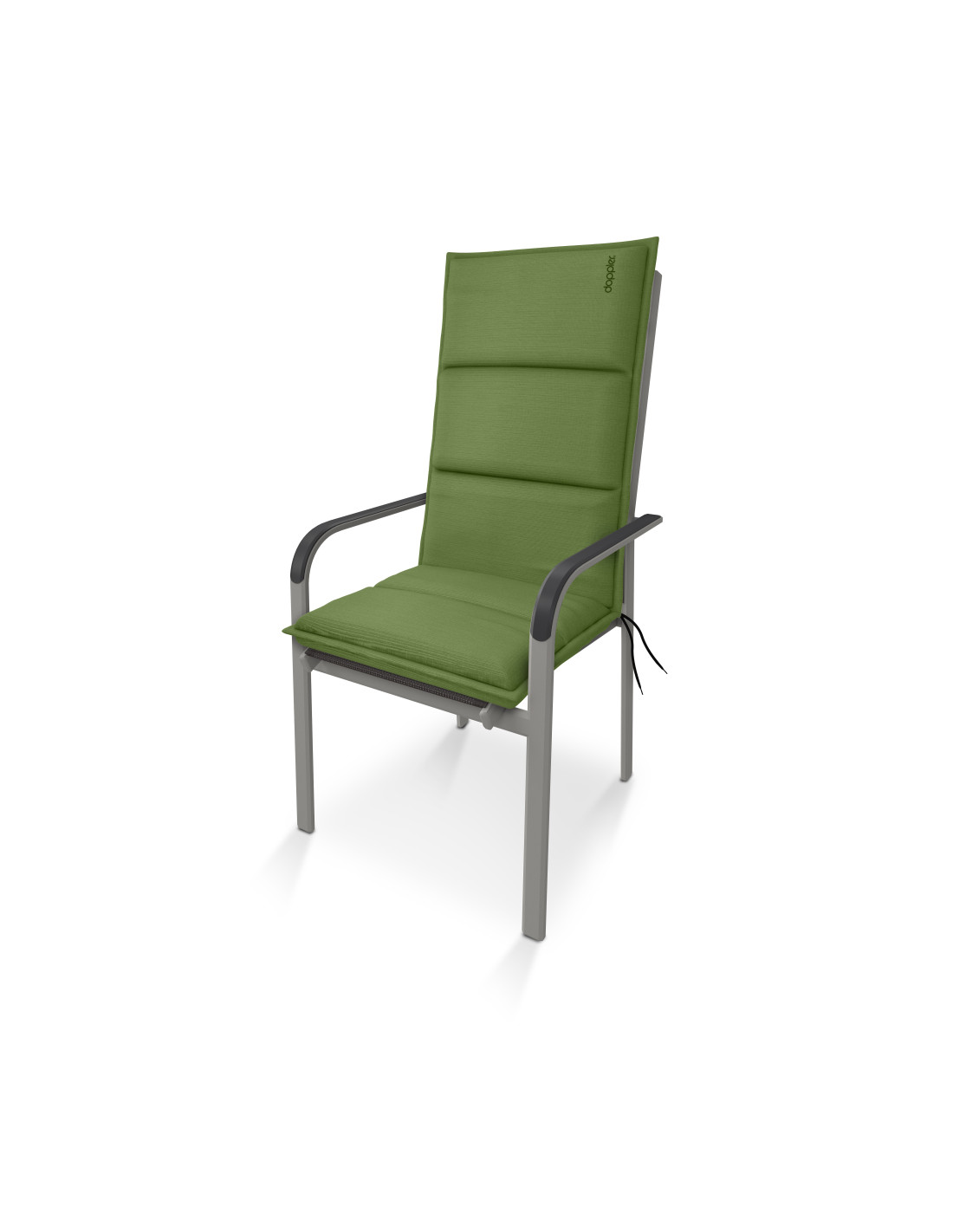 Polstr s vysokou opěrkou řady CITY. Elegantní polstr v módním odstínu, zdobený výšivkou Doppler na opěradle. Polstr je v provedení s obšitým lemem, prošitý 1x v sedáku, 2x v opěradle. Uchycení je pomocí posuvné spony. Díky sponě si můžete nastavit velikost dle rozměru a druhu židle, spona je pevná a nevytahuje se. Upevnění sedáku je pomocí dvou tkaniček v ohybu polstru. Síla polstru je optimální pro všechny druhy židlí. Provedení je vhodné i do náročných podmínek kaváren, zahrádek a restaurací. Potah je nesnímatelný.