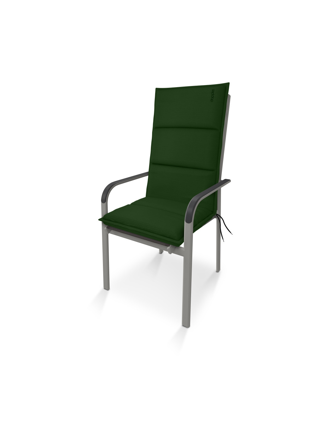 Polstr s vysokou opěrkou řady CITY. Elegantní polstr v módním odstínu, zdobený výšivkou Doppler na opěradle. Polstr je v provedení s obšitým lemem, prošitý 1x v sedáku, 2x v opěradle. Uchycení je pomocí posuvné spony. Díky sponě si můžete nastavit velikost dle rozměru a druhu židle, spona je pevná a nevytahuje se. Upevnění sedáku je pomocí dvou tkaniček v ohybu polstru. Síla polstru je optimální pro všechny druhy židlí. Provedení je vhodné i do náročných podmínek kaváren, zahrádek a restaurací. Potah je nesnímatelný.