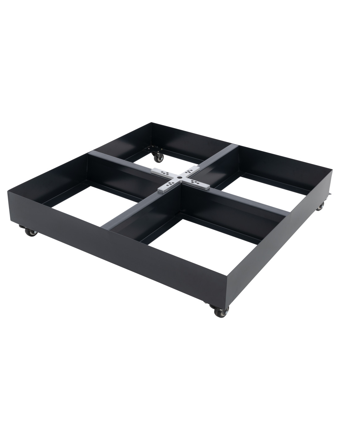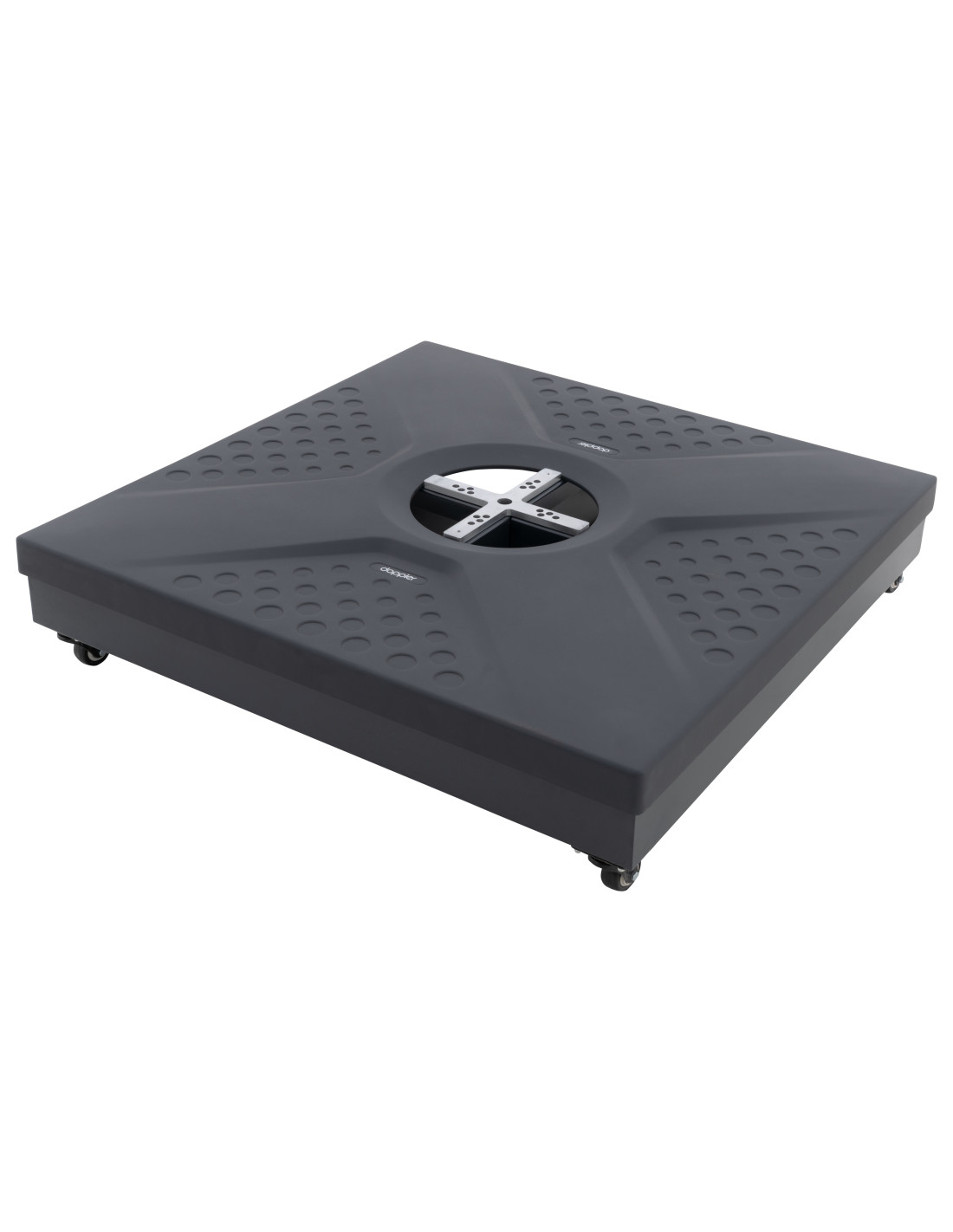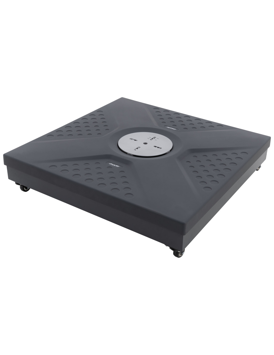 Kovový dlaždicový stojan je perfektní řešení pro stabilní kotvení slunečníků s boční nohou. Základní konstrukci tvoří robustní kovový rám z pozinkované, práškově stříkané oceli s kvalitním plastovým krytem. Je vhodný pro uložení 4 kusů zátěžových desek s rozměrem 40 x 40 cm, s max. výškou dlaždice 4 cm. Pomocí čtyř šroubů lze slunečník rychle přichytit na určené místo. Díky kolečkům na spodní straně snadno přesunete na požadovanou pozici na terase. Vhodný pro slunečníky s průměrem střechy až 400 cm.