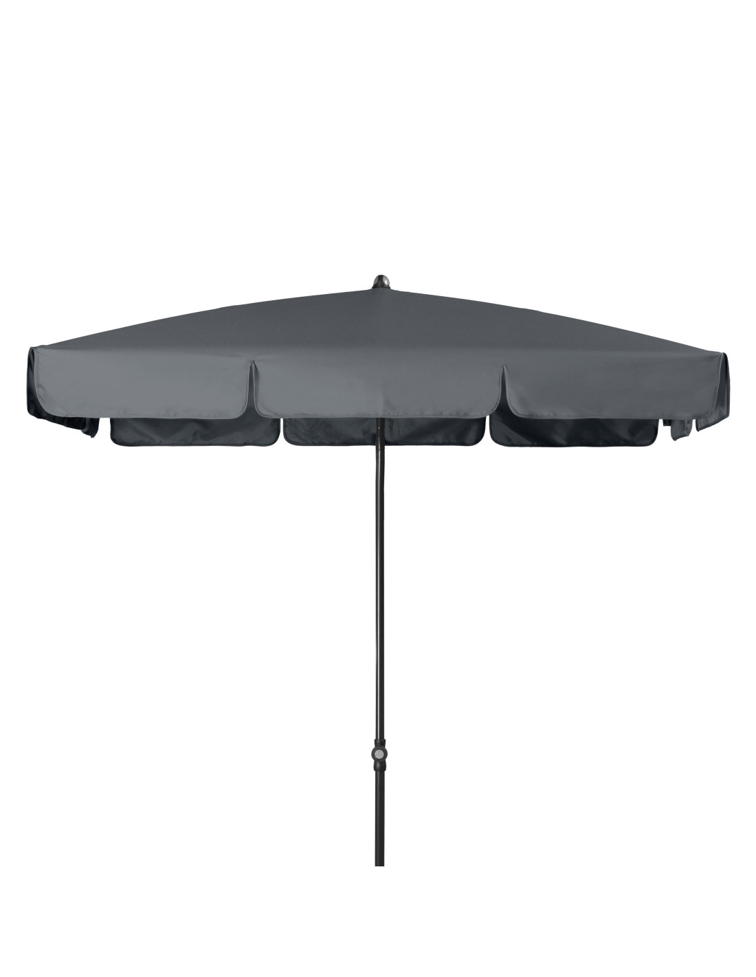 Tento slunečník je ideálním společníkem na balkón či terasu. Slunečník disponuje komfortní funkcí naklápění střechy. Rám slunečníku je vyroben z oceli v antracitové barvě s epoxidovou povrchovou úpravou. Potah je s volánem a je vyrobený z kvalitní nepromokavé polyesterové tkaniny beze švů. Díky tomu je potah je odolný povětrnostním vlivům a poskytuje vynikající UV ochranou 80+.