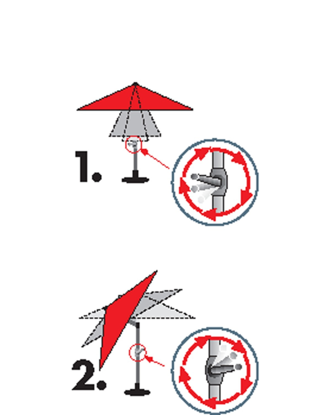 Tento moderní, lehký, stabilní slunečník je ideálním společníkem na balkón, terasu, nebo zahradu. Slunečník má kvalitní hliníkovou konstrukci a funkci automatického naklápěcího kloubu. Lze výškově nastavit. Potah je vyroben z 100% polyesterové tkaniny odolné povětrnostním vlivům s vynikající UV ochranou 80+. Má snímatelný potah pro ruční praní. Díky ventilačnímu otvoru ve střeše se pod slunečníkem nekumuluje horký letní vzduch.