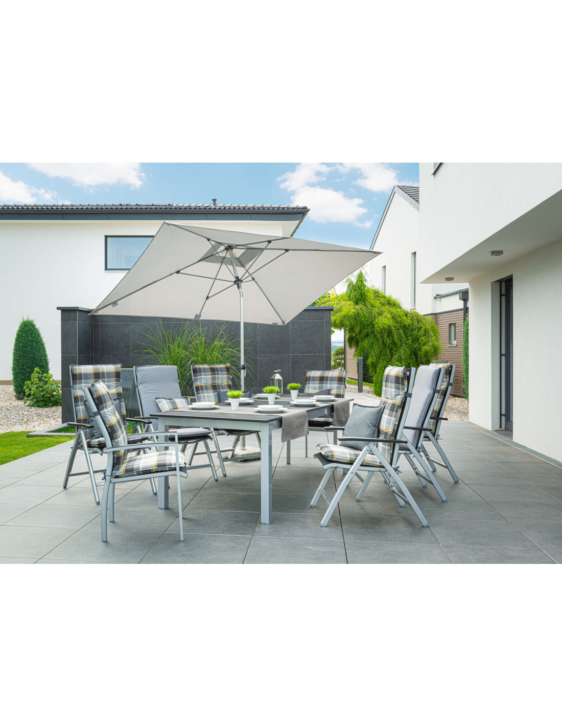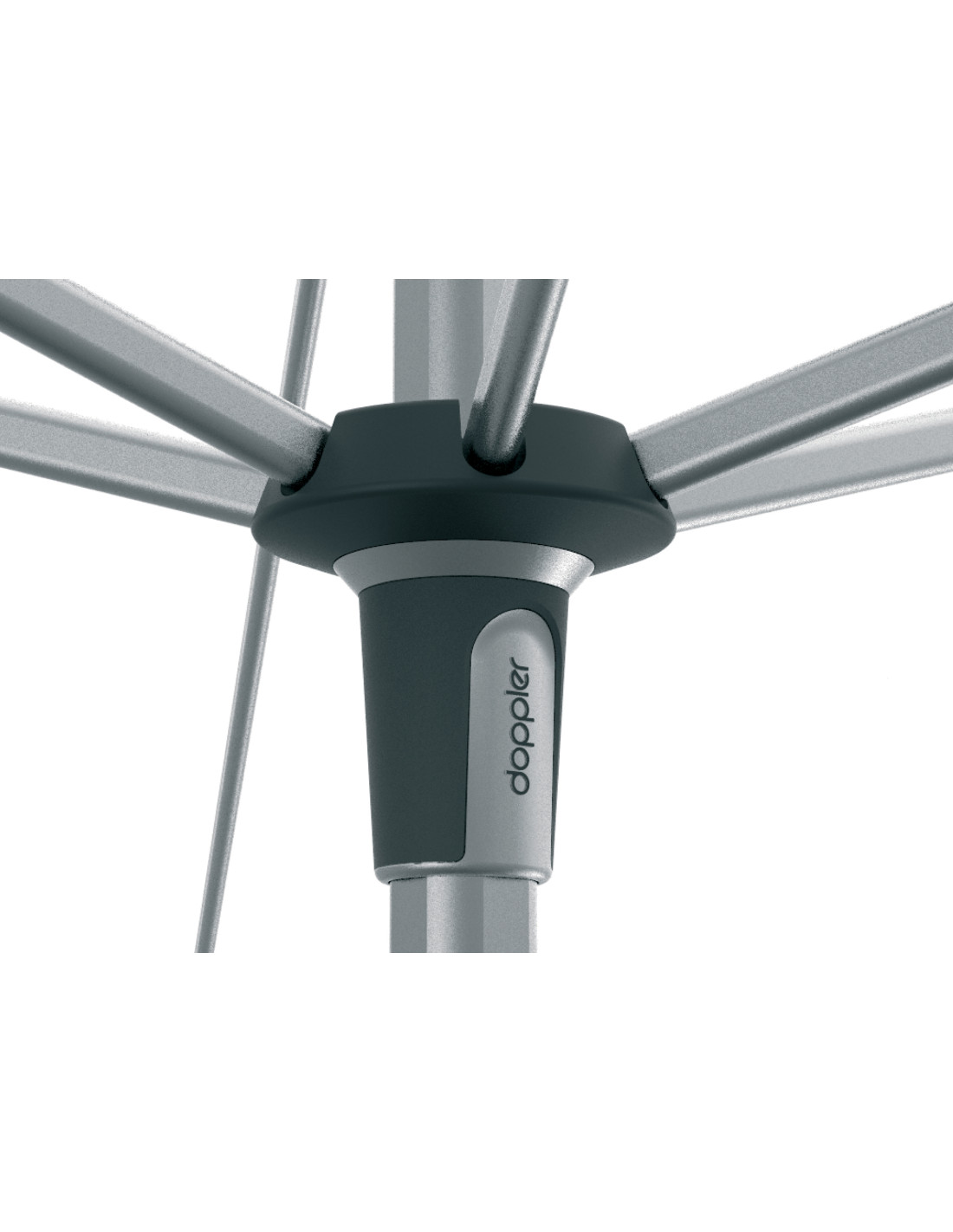 Tento moderní, lehký a stabilní slunečník je ideálním společníkem na balkón, terasu, nebo zahradu. Slunečník má kvalitní hliníkovou konstrukci a funkci automatického naklápěcího kloubu. Lze výškově nastavit. Potah je vyroben z 100% polyesterové tkaniny odolné povětrnostním vlivům s vynikající UV ochranou 80+. Má snímatelný potah pro ruční praní. Díky ventilačnímu otvoru ve střeše se pod slunečníkem nekumuluje horký letní vzduch.