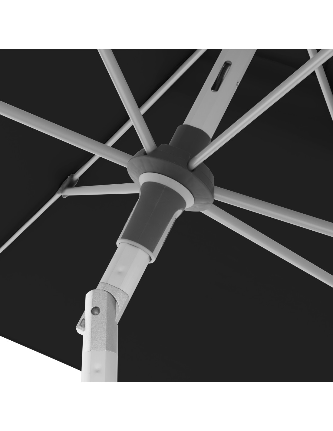 Slunečník s kličkou má kvalitní hliníkovou konstrukci a funkci automatického naklápěcího kloubu. Lze výškově nastavit. Potah je vyroben z 100% polyesterové tkaniny odolné povětrnostním vlivům s dobrou UV ochranou 80+.