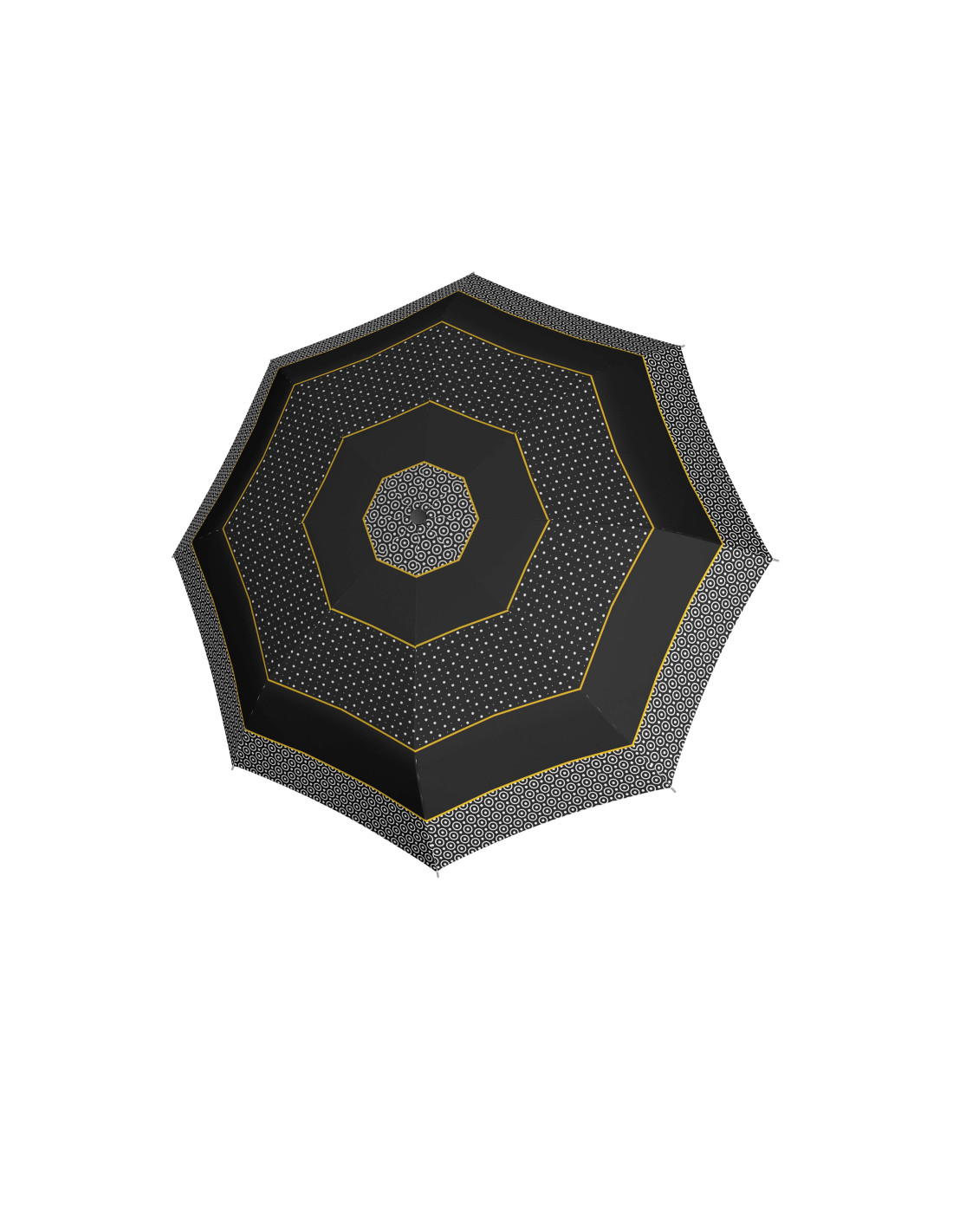 Hit Lang AC Triple Triade je dámský holový vystřelovací deštník s geometrickým vzorem ve žluté barvě.