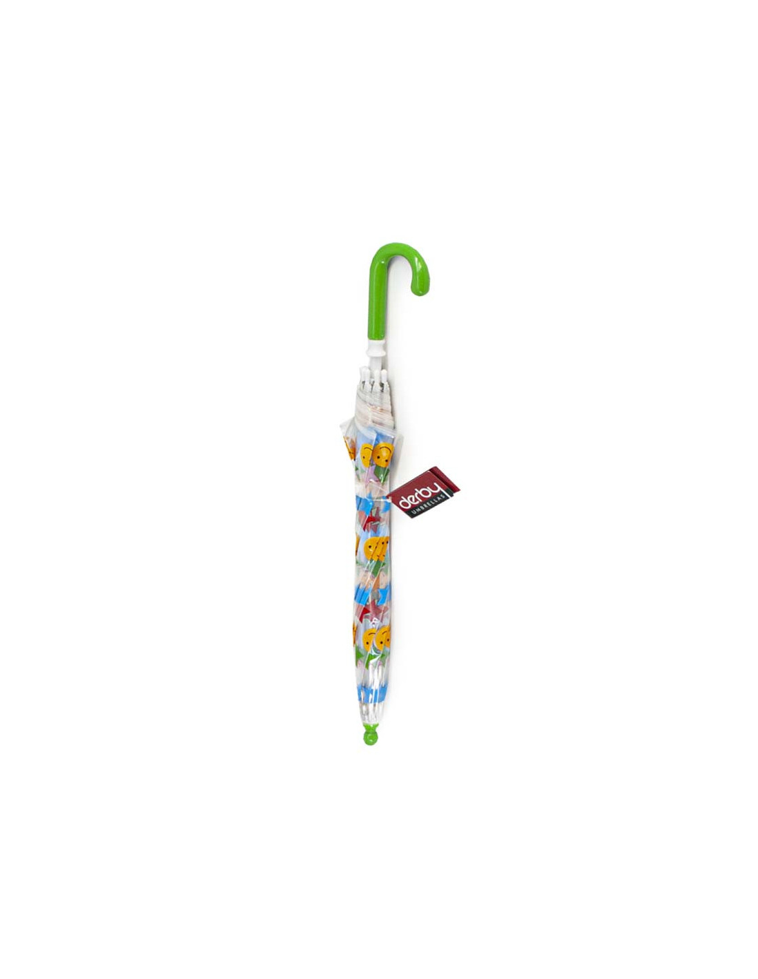 Dětský holový deštník s průhlednou střechou s veselými obrázky, které dětem rozzáří i deštivé dny. Velice kvalitní konstrukce ze sklolaminátu, barevná plastová ručka.