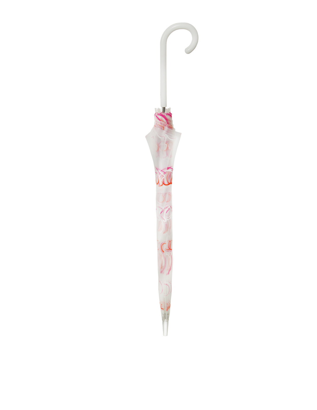 Dámský průhledný holový deštník příjemný do ruky. Stabilní díky konstrukci ze sklolaminátu a oceli. Při otočení deštníku nedojde k jeho poškození. Veliká transparentní střecha s potiskem.