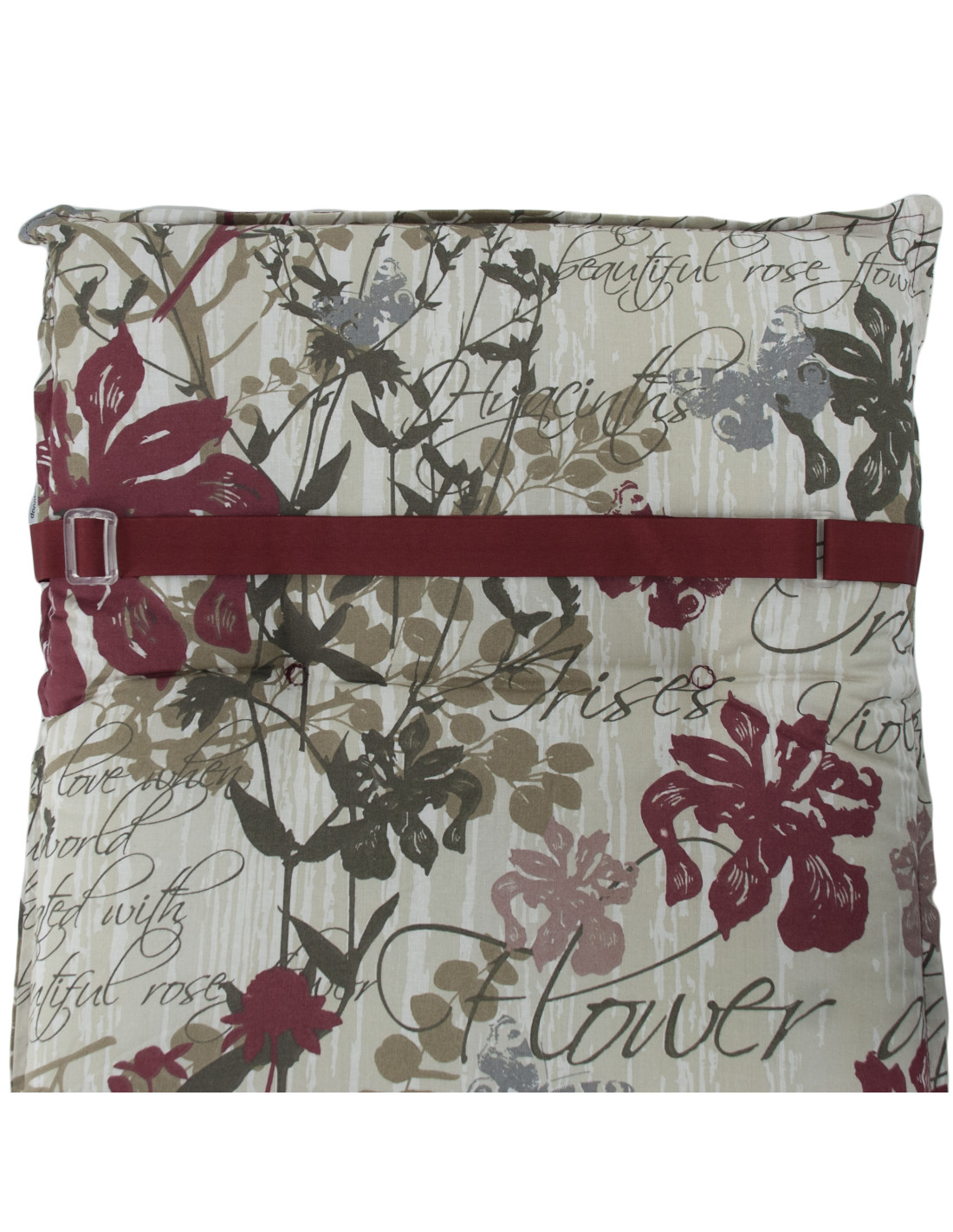Polstr s vysokou opěrkou řady LIVING je v provedení s obšitým lemem, prošitý kroužkově 4x v opěradle. Uchycení je pomocí posuvné spony. Díky sponě si můžete nastavit velikost dle rozměru a druhu židle, spona je pevná a nevytahuje se. Upevnění sedáku je pomocí dvou tkaniček v ohybu polstru. Síla polstru je optimální pro všechny druhy židlí. Provedení je vhodné i do náročných podmínek kaváren, zahrádek a restaurací. Potah je nesnímatelný.