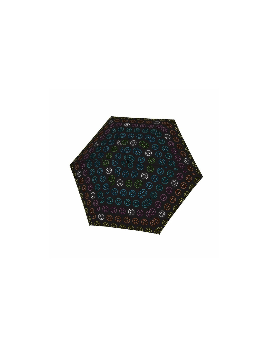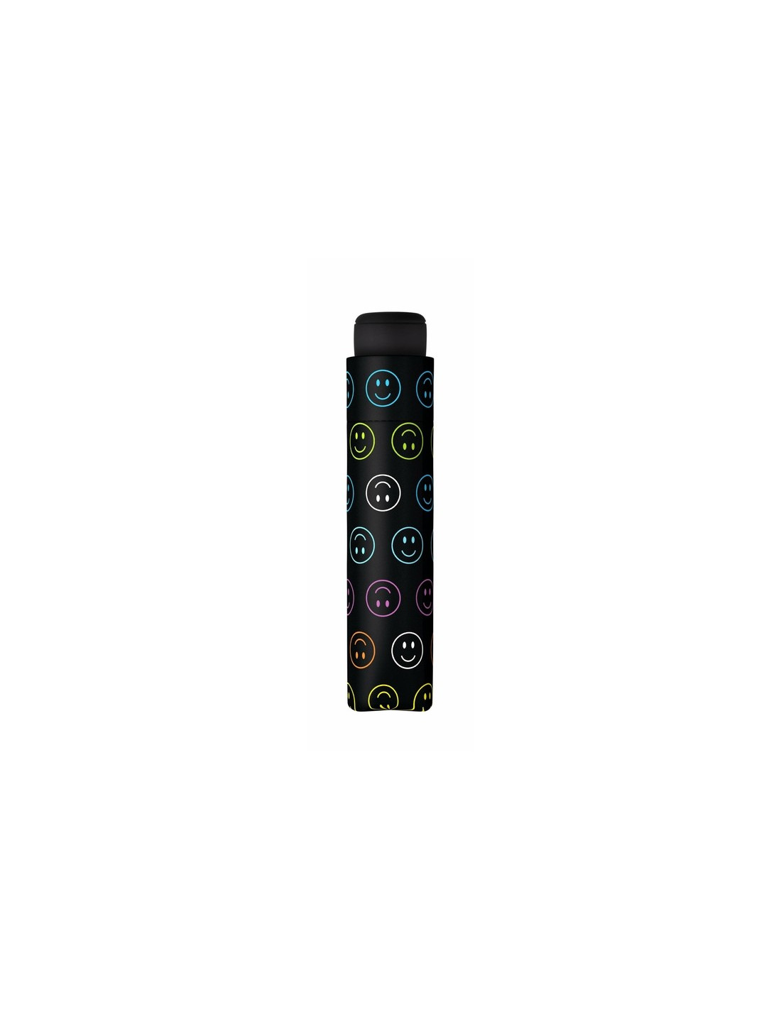 Manuální deštník s celohliníkovou konstrukcí, díky níž je deštník lehký, ale stále pevný. Černá střecha deštníku je poseta vtipnými, barevnými smajlíky. Bílý smajlíci jsou opatřeny reflexní povrchovou úpravou a zaručují viditelnost v mlze, soumraku nebo ve tmě. Deštník vhodný do kabelky i batohu. Poslední rameno ze sklolaminátu zajišťuje pružnost ve větru.