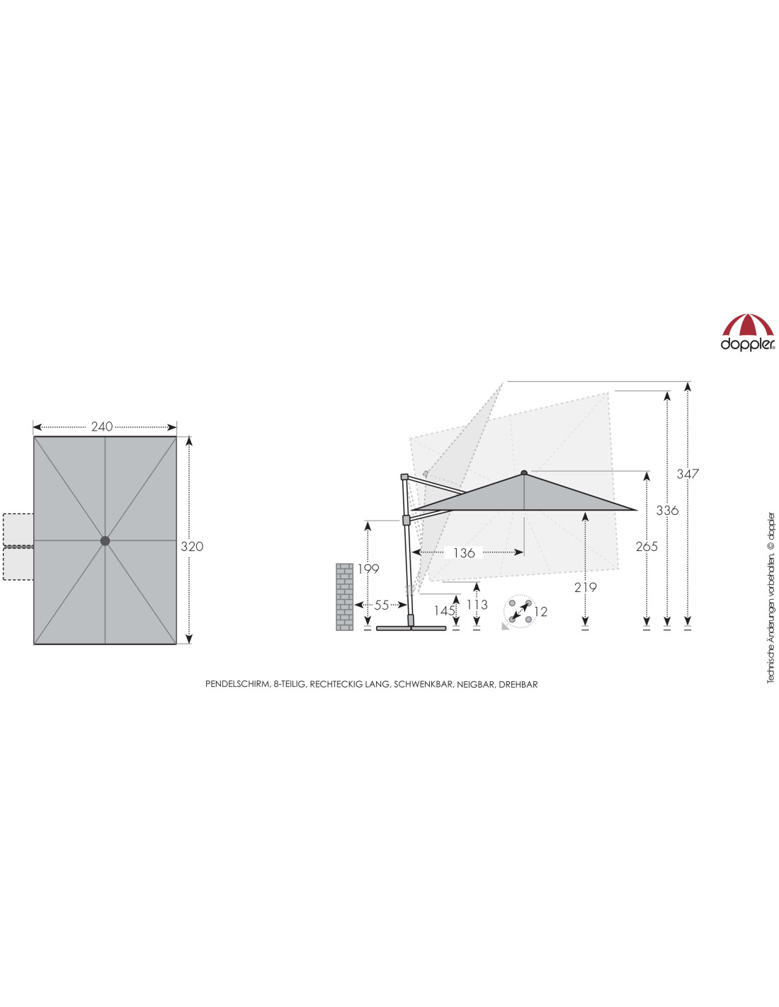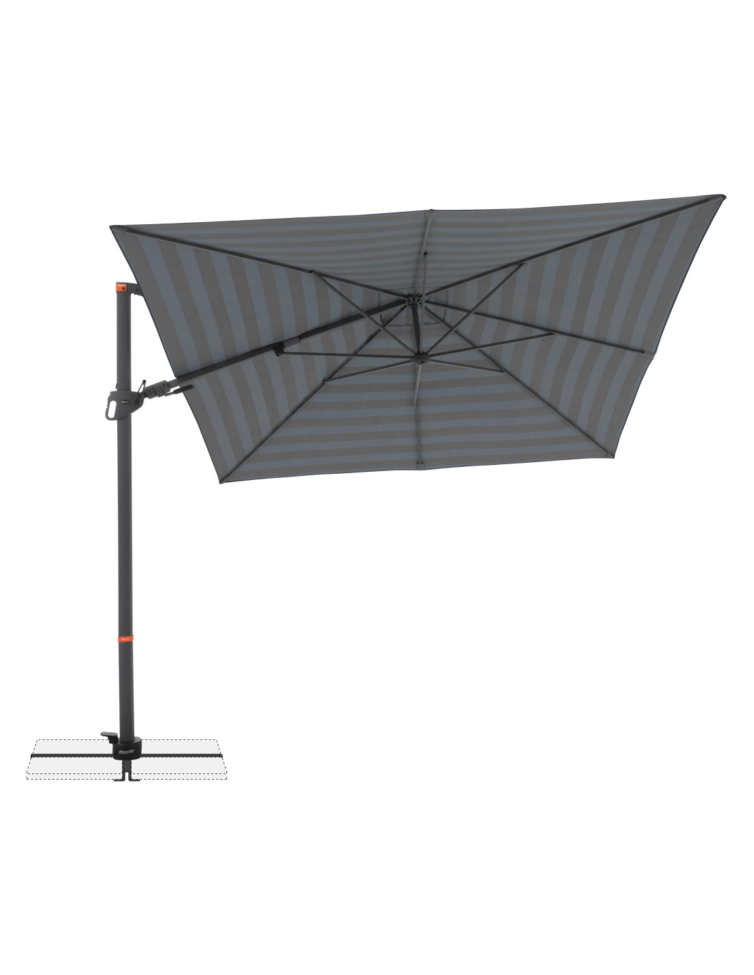 Díky obdélníkové střeše je slunečník zvláště vhodný pro zastínění zahradního nábytku. Slunečník lze také otáčet o 360 stupňů, osově natáčet na obě strany a naklápět dozadu v sedmi polohách.