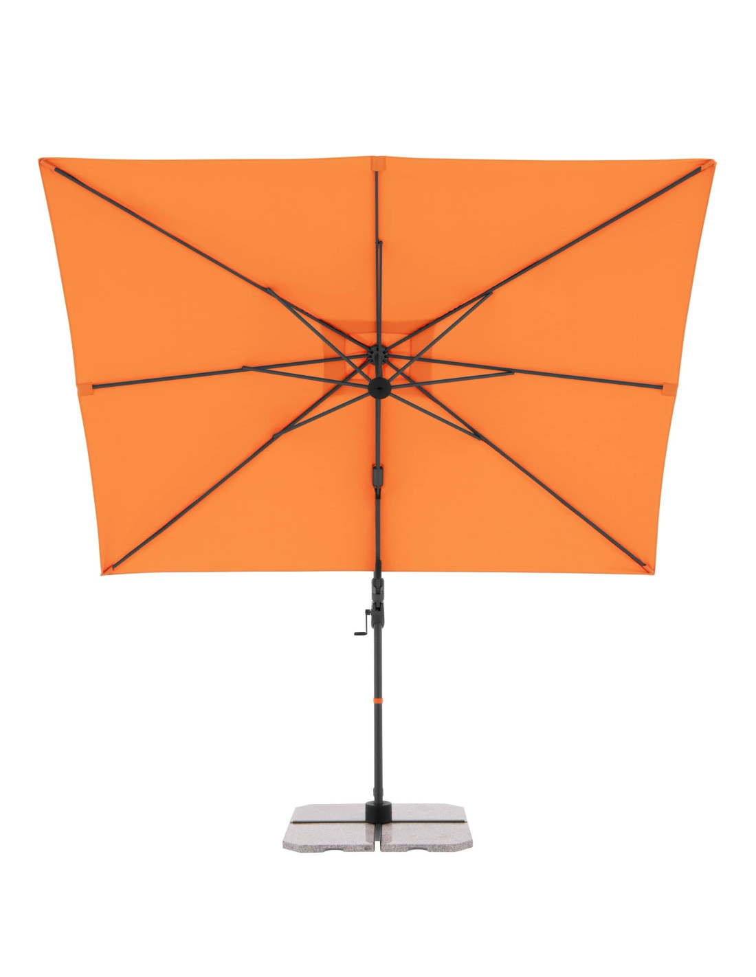 Díky obdélníkové střeše je slunečník zvláště vhodný pro zastínění zahradního nábytku. Slunečník lze také otáčet o 360 stupňů, osově natáčet na obě strany a naklápět dozadu v sedmi polohách.