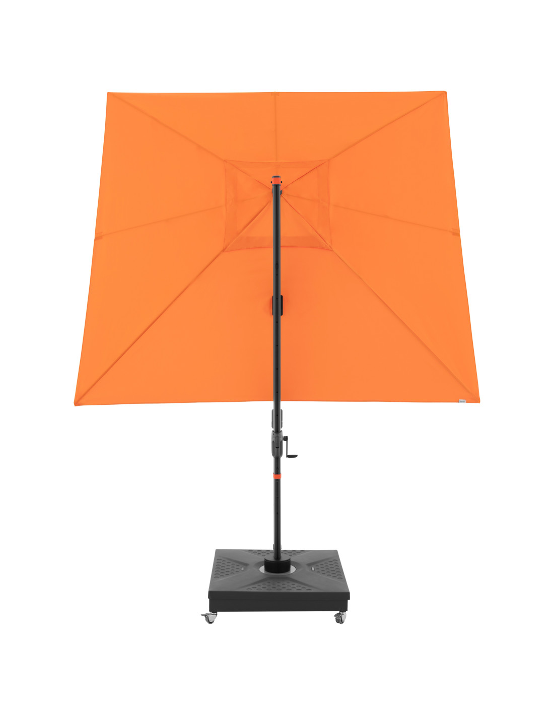 Díky čtvercové střeše je slunečník zvláště vhodný pro zastínění zahradního nábytku. Slunečník lze také otáčet o 360 stupňů, osově natáčet na obě strany a naklápět dozadu v sedmi polohách.