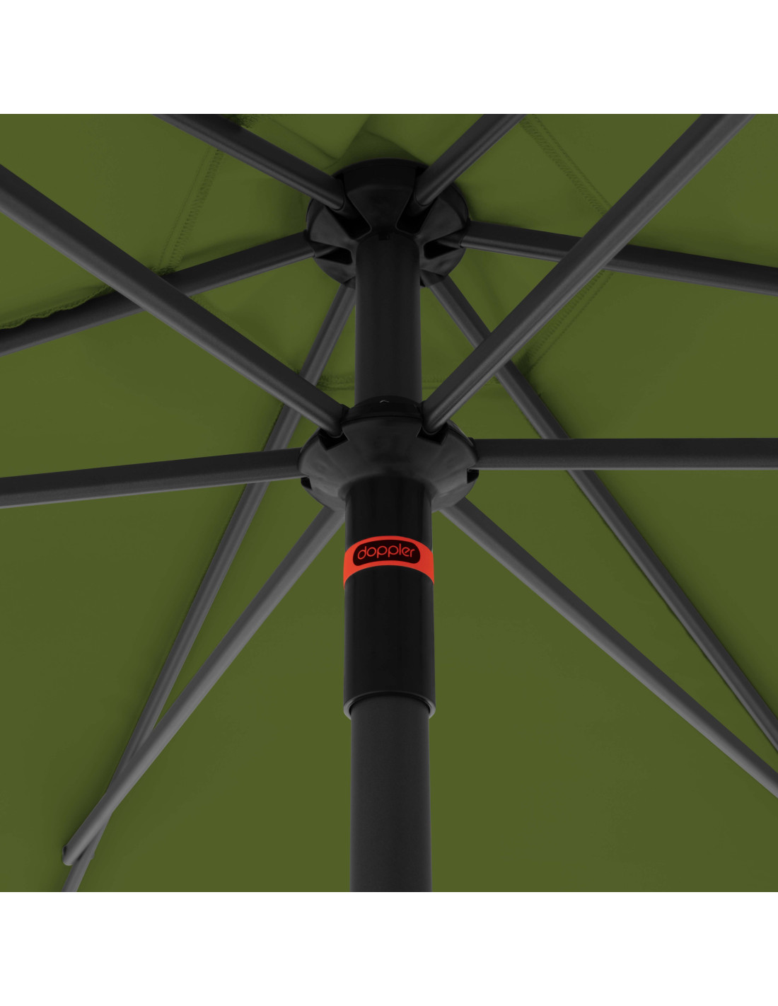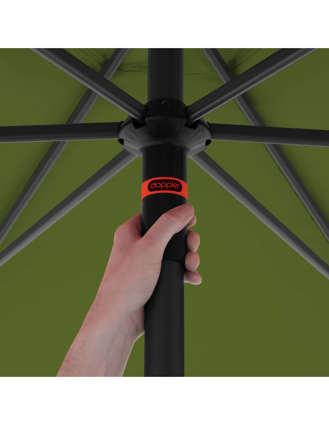 Slunečník je vybaven ""Push up"" funkcí pro snadnější otevírání a zavírání. Slunečník disonuje komfortní funkcí naklopení střechy. Slunečník je možné výškověnastavit o 15 cm. Díkyvzduchovému ventiluve střeše se pod slunečníkem nekumuluje horký letní vzduch.