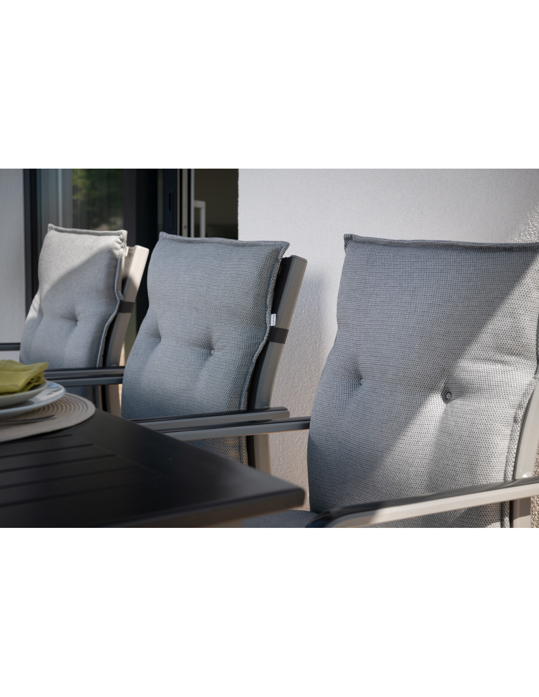 Polstr s nízkou opěrkou na zahradní nábytek řady STAR je v provedení s obšitým lemem, 2x kroužkově prošitý v opěradle. Uchycení je pomocí posuvné spony. Díky sponě si můžete nastavit velikost dle rozměru a druhu židle, spona je pevná a nevytahuje se. Upevnění sedáku je pomocí dvou tkaniček v ohybu polstru. Potah je nesnímatelný.