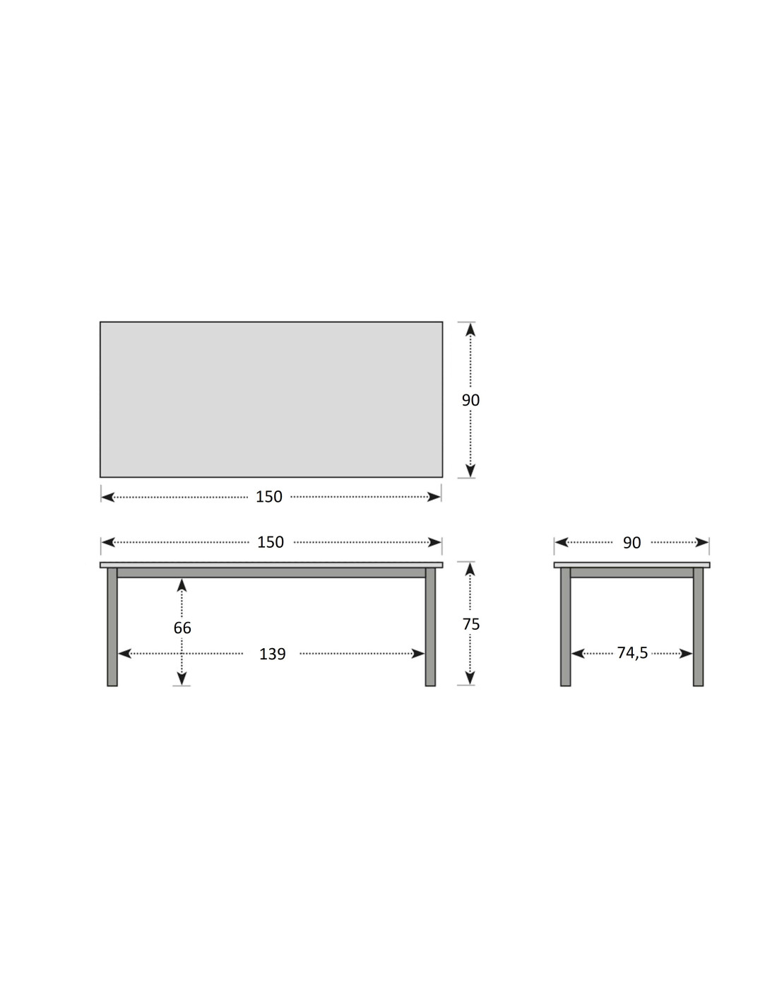 - rozměry: 150 x 90 x 75 cm (šířka x hloubka x výška)