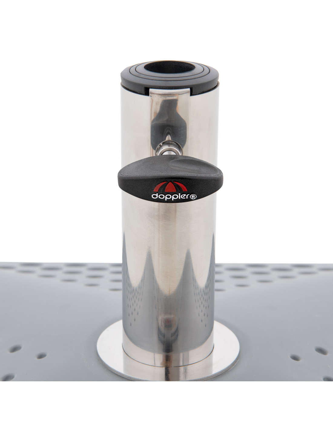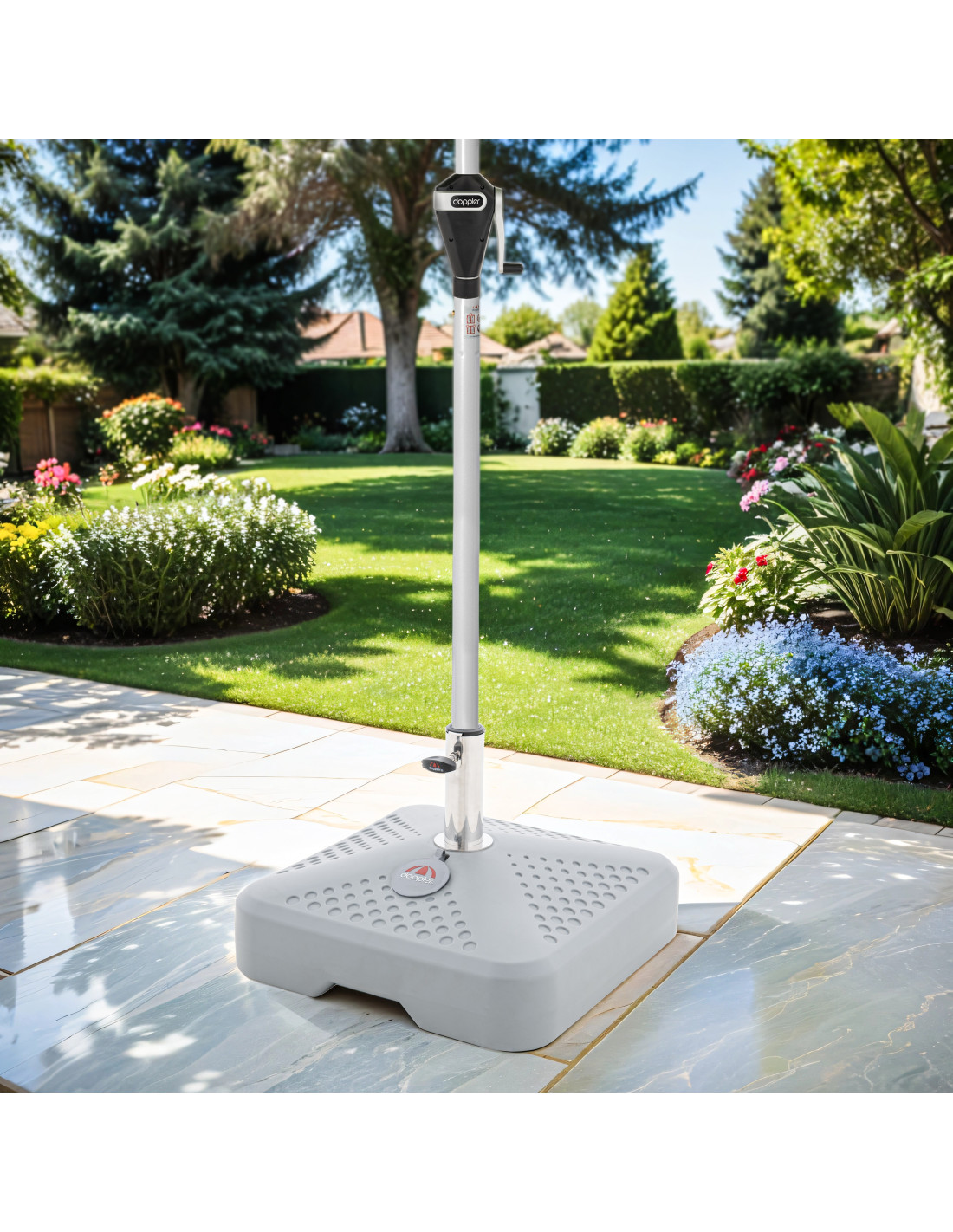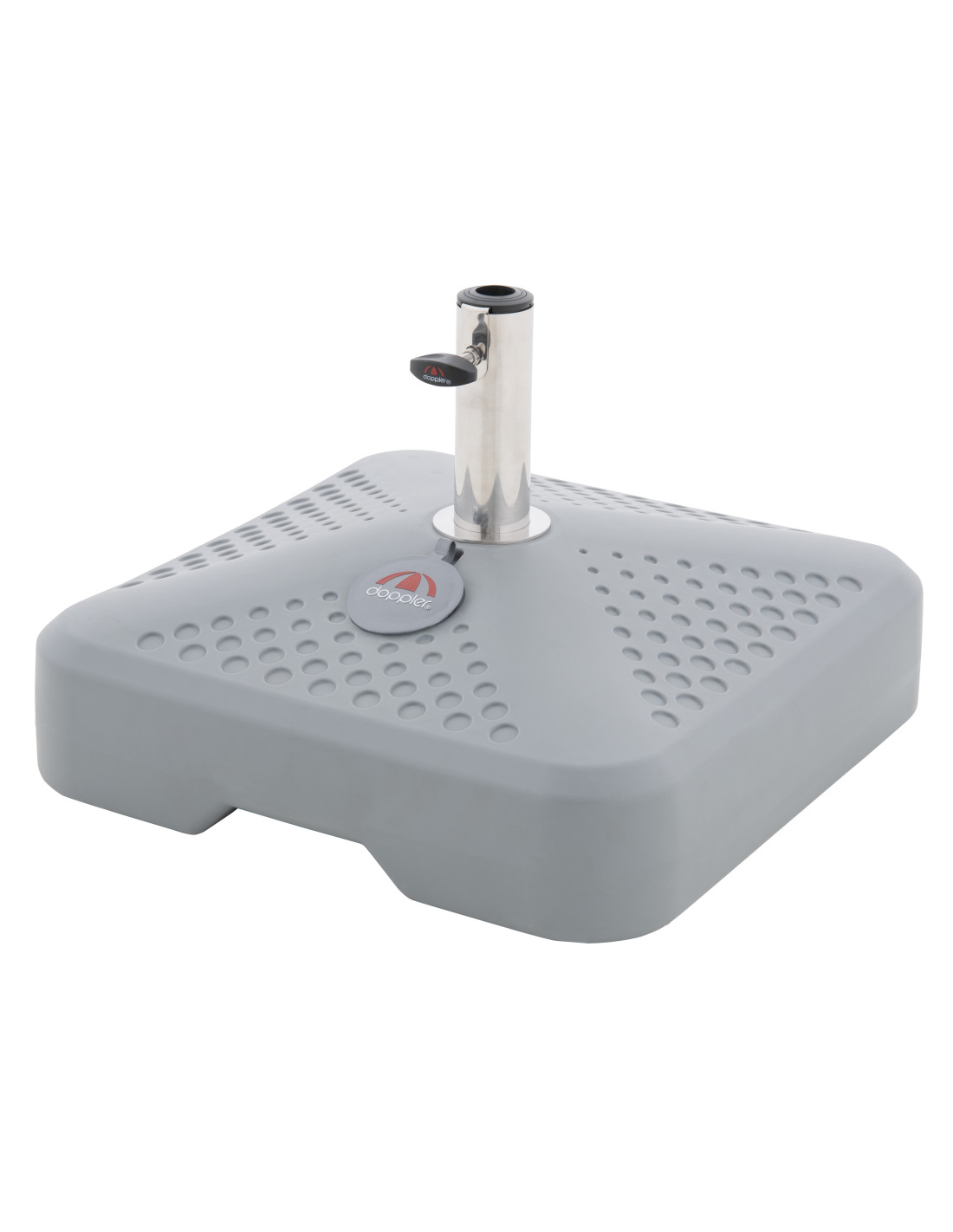 Plnitelný stojan Active 25 l nabízí vše, co si můžete od stojanu přát. Je vybavený velkými pojezdovými kolečky, které umožňují stojan se slunečníkem snadno a rychle přesunout tam, kde je to nejvíce třeba. Má moderní, elegantní design, díky kterému zapadne do každého prostředí. Zaoblené hrany podstavce navíc zabraňují nebezpečí poranění. Jeho robustní konstrukce z kvalitních materiálů dodává stojanu na odolnosti a dlouhé životnosti. Pod zesíleným plastovým vrchním krytem se skrývá vysoce odolná spodní konstrukce z oceli. Slunečník lze do stojanu jednoduše ukotvit pomocí trubky z nerezové oceli a zajišťovacího šroubu. Ke stojanu navíc dodáváme 4 redukčních vložek, díky nimž je možné stojan využít pro široké spektrum slunečníků s průměrem tyče od 25 do 48 mm (vždy je nutné zohlednit velikost slunečníku a doporučené minimální zatížení každého modelu, průměr slunečníku by neměl přesáhnout 250 cm).
