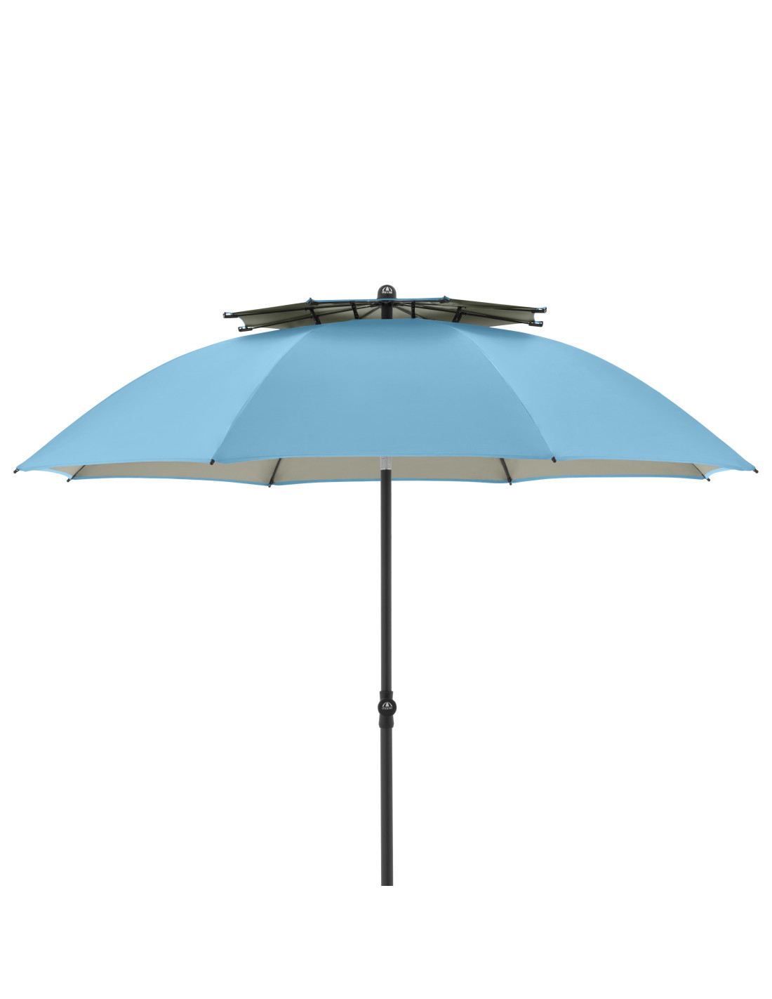 Tento robustní plážový slunečník je ideálním společníkem na pláž, k rybníku nebo bazénu. Rám slunečníku je vyroben z oceli ošetřen práškovou barvou a je výškově nastavitelný. Vzduchový ventil, sklolaminátové výztuhy a praktická přenosná taška dokonale dotváří tento výrobek. Potah je vyroben z polyesterové tkaniny odolné povětrnostním vlivům s dobrou UV ochranou 50+.