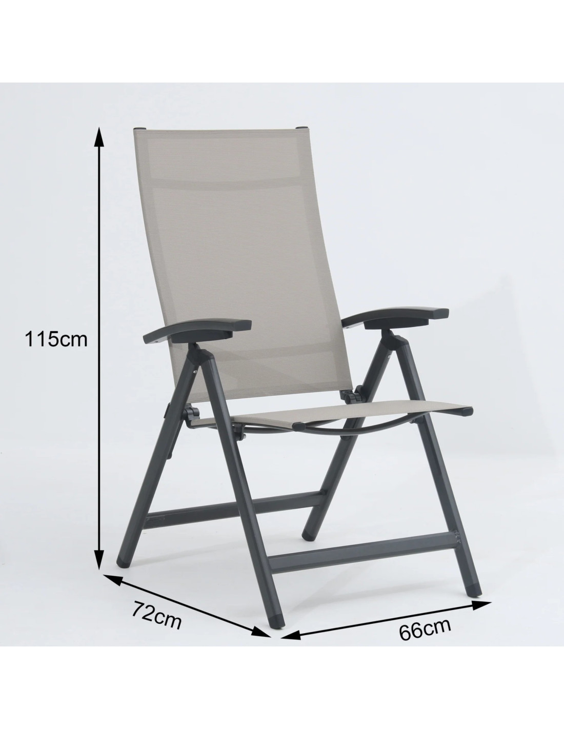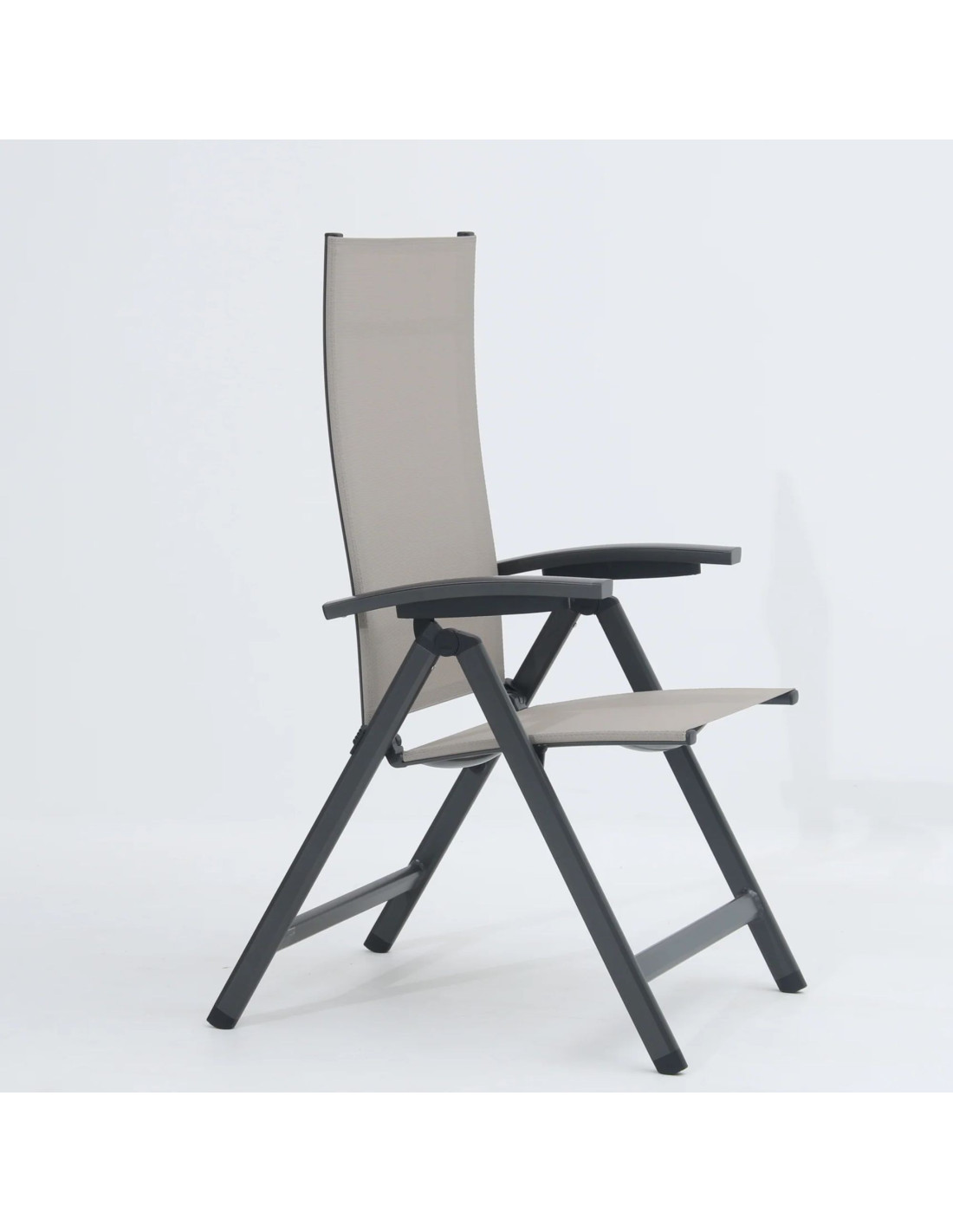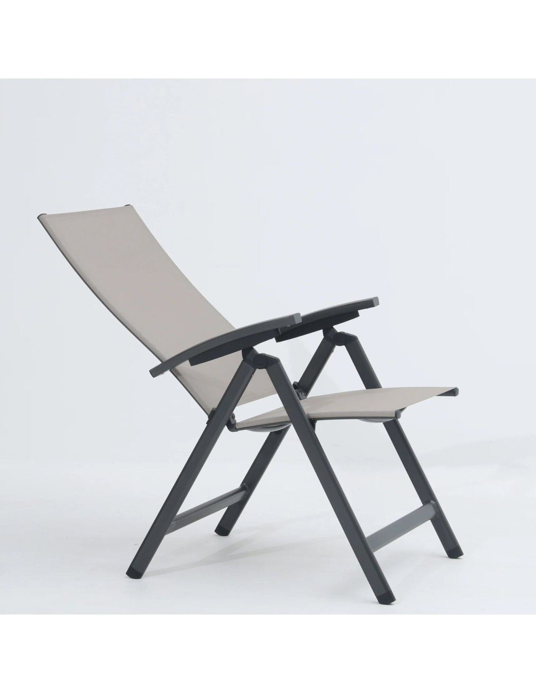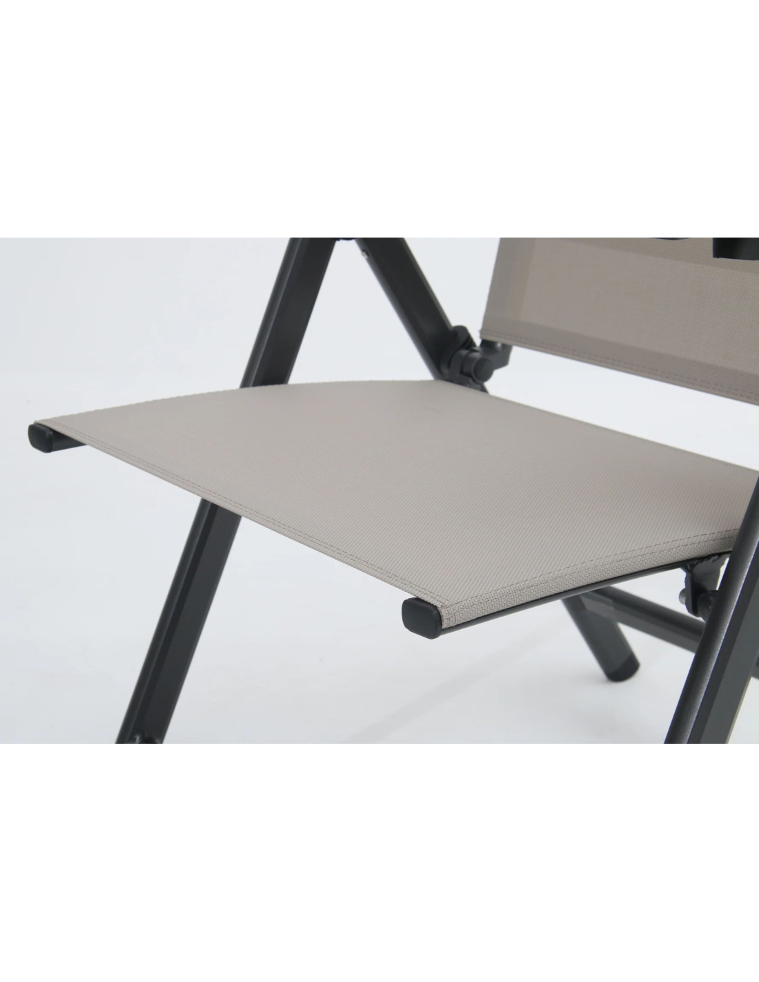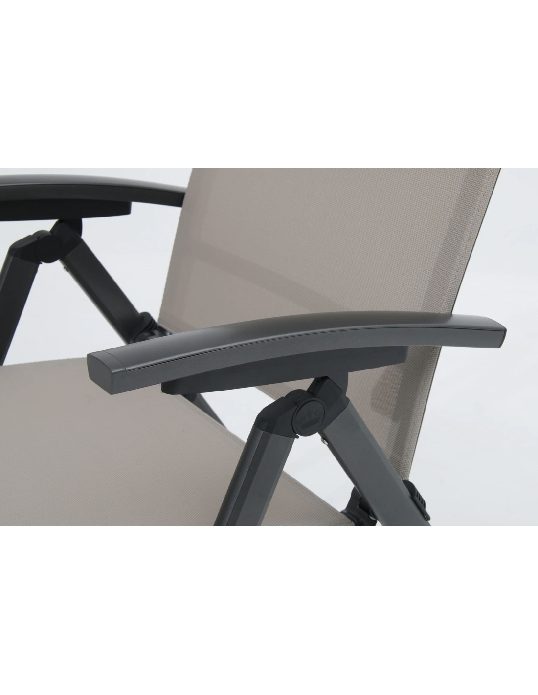 Polohovací zahradní křeslo AVANTAGE je vyrobeno z bezúdržbových materiálů. Stabilní hliníková konstrukce v antracitové barvě je doplněna výpletem z kvalitní umělé textilie v barvě mocca. Polohovací systém opěrky zaručí maximálně komfortní odpočinek. Vše doplňují stabilní hliníkové područky.