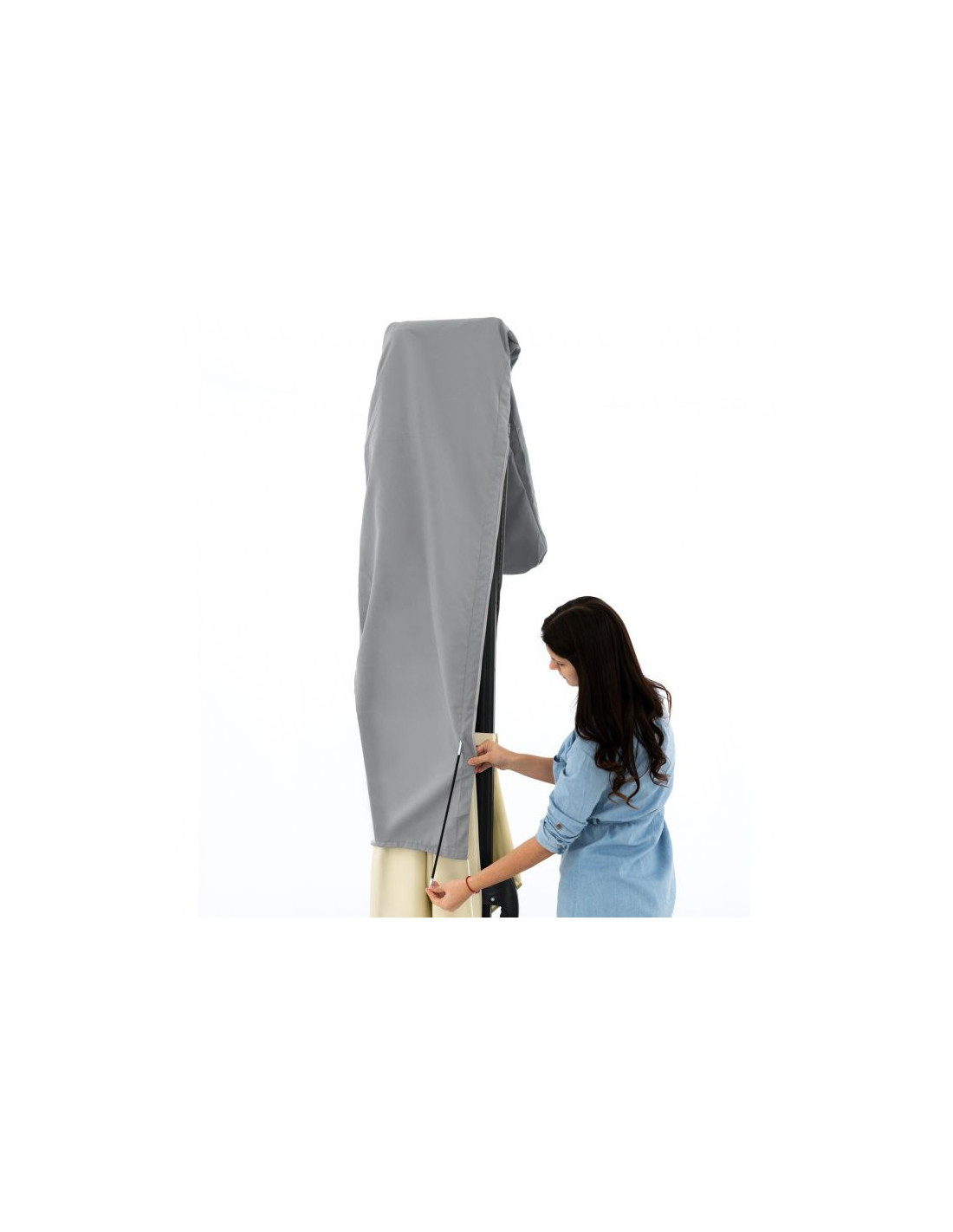 S tímto krytem je váš slunečník bezpečně chráněn před povětrnostními vlivy a vyblednutím před sluncem. Použití ochranného krytu výrazně zvyšuje životnost slunečníku. Ochranný kryt je vyroben ze 100% polyesterové tkaniny odolného vůči povětrnostním vlivům. Je vybaven zavazovací šňůrkou, zipem a ovládací tyčí. Díky tomu lze potah snadno přetáhnout přes slunečník.