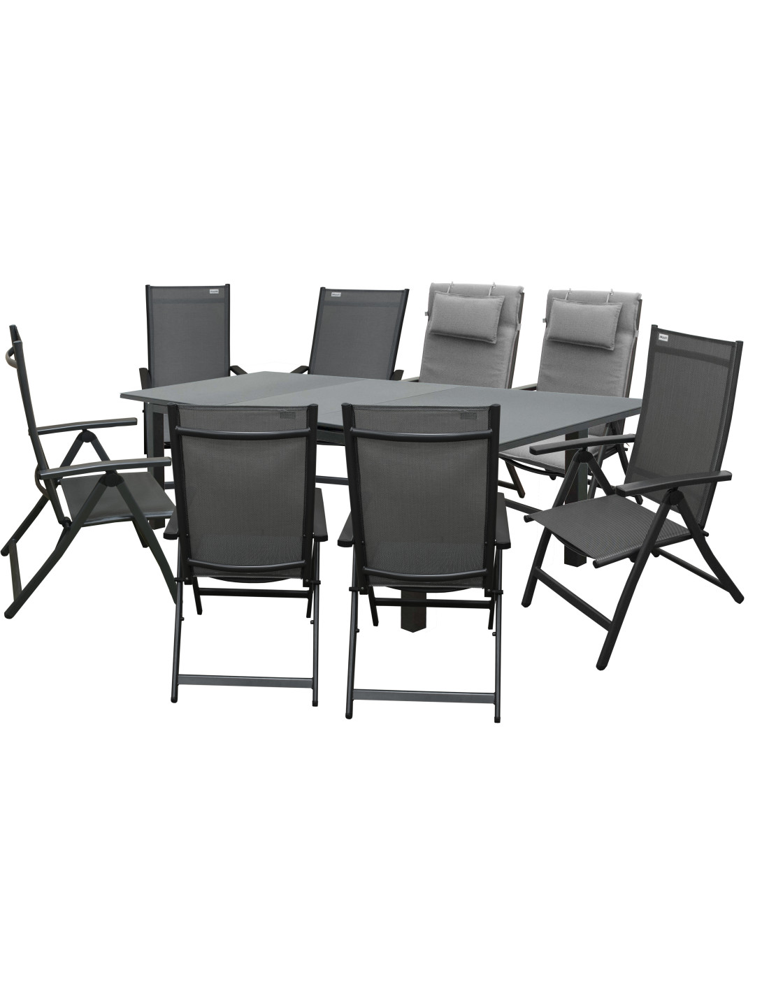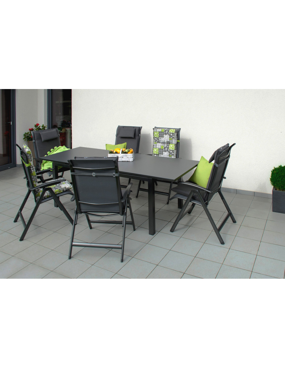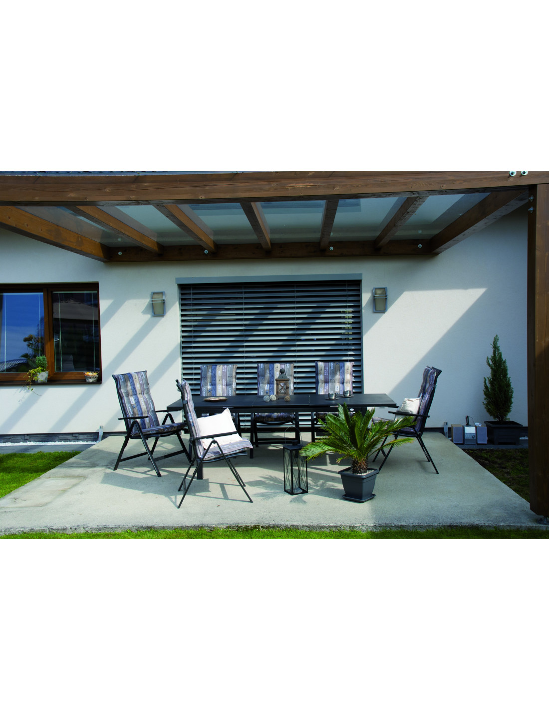 Zahradní rozkládací stůl FIRENZE je moderní venkovní nábytek minimalistického funkčního designu. Jedná se o spojení skla a kovu v elegantní celek. Stůl je stabilní a odolný. Má hliníkovou konstrukci v antracitové barvě. Deska stolu je z velmi odolného bezpečnostního tvrzeného skla v tmavě šedé barvě. Tloušťka skla je ca 5 mm. Díky strukturování nejsou na skle vidět stopy po poškrábání či otisky prstů.
