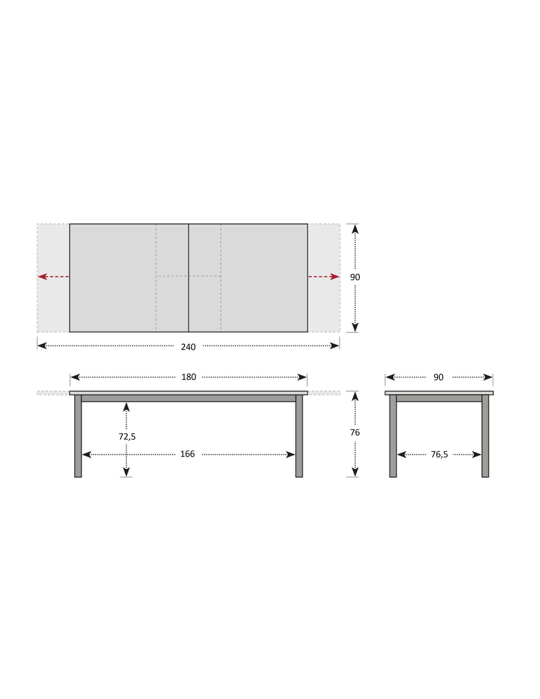 FIRENZE - rozkládací hliníkový stůl 180/240 x 90 x 75 cm