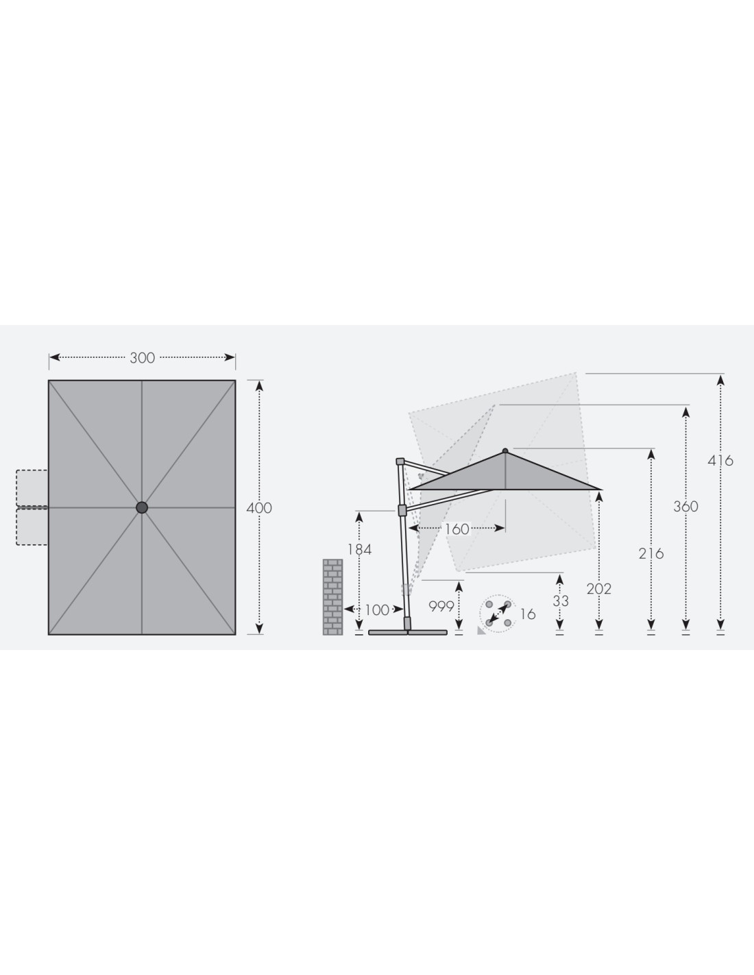 LIFE 300 x 400 cm – výkyvný zahradní slunečník s boční tyčí