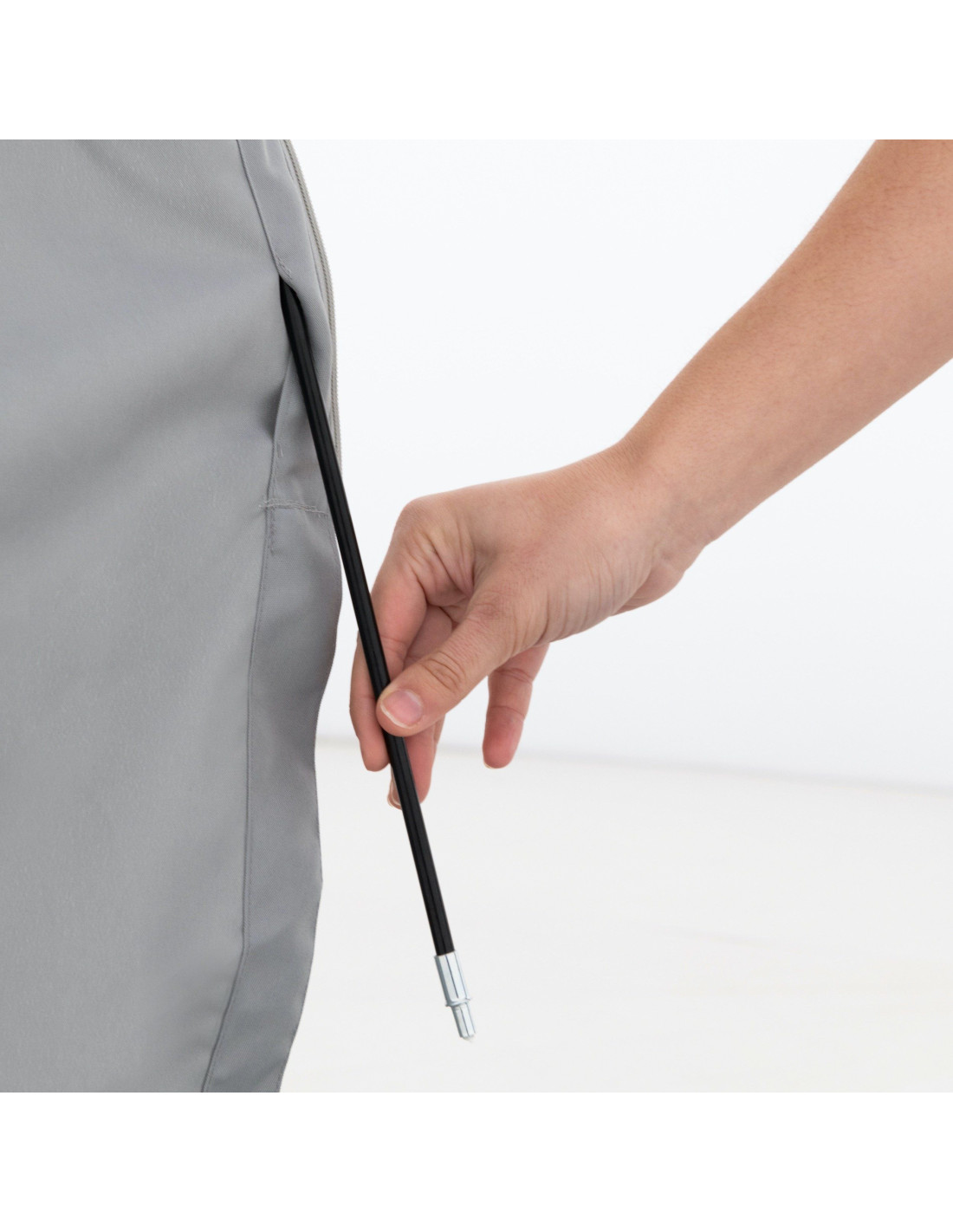 S tímto krytem je váš slunečník bezpečně chráněn před povětrnostními vlivy a vyblednutím před sluncem. Použití ochranného krytu výrazně zvyšuje životnost slunečníku. Ochranný kryt je vyroben ze 100% polyesterové tkaniny odolného vůči povětrnostním vlivům. Je vybaven zavazovací šňůrkou, zipem a ovládací tyčí. Díky tomu lze potah snadno přetáhnout přes slunečník.