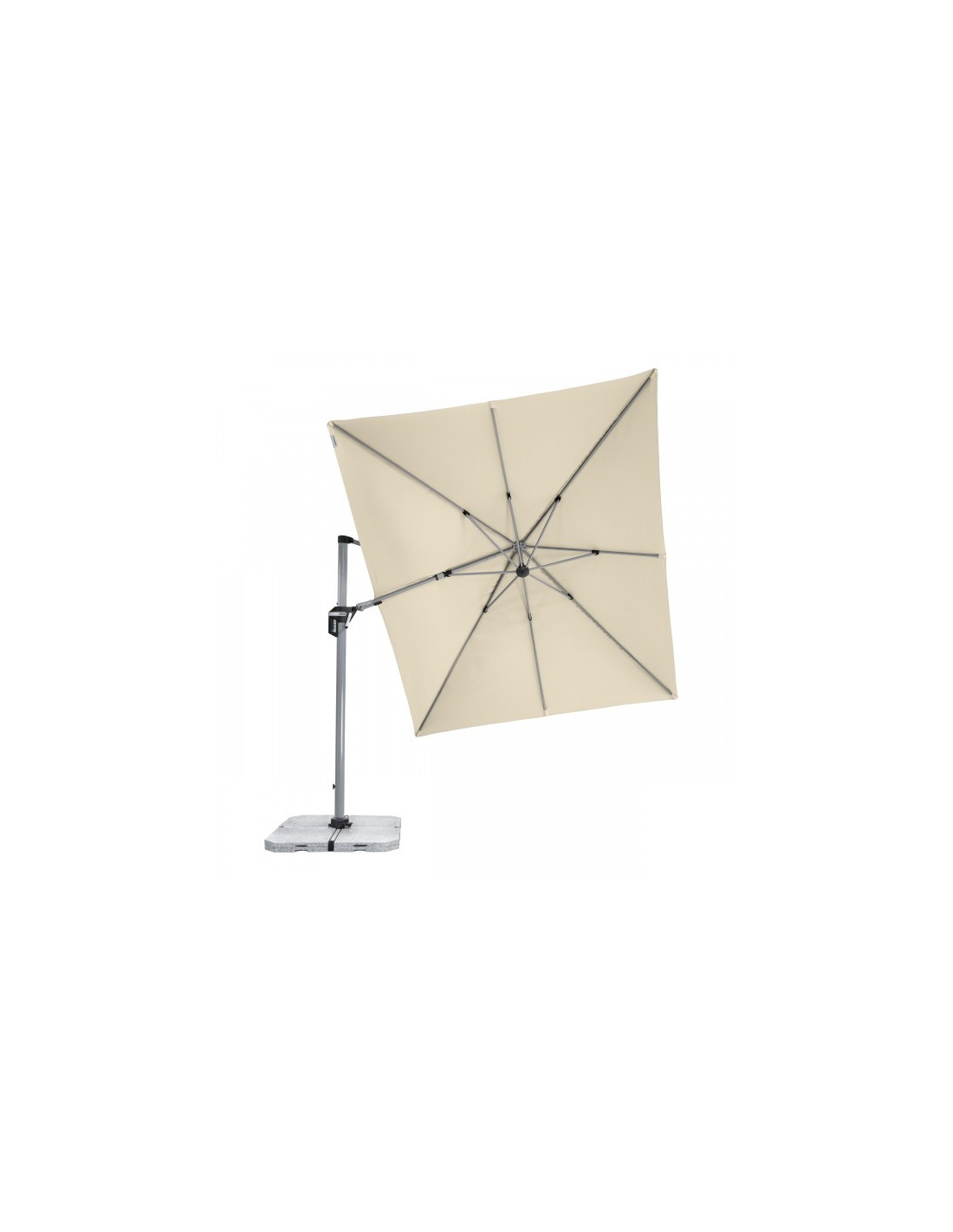 Active 350 x 260 cm je velice všestranný a vysoce kvalitní slunečník s pevným hliníkovým rámem. Obdélníkový tvar střechy je obzvláště vhodný pro zastínění zahradního nábytku. Kromě toho se slunečník dá přizpůsobit pohybu slunce během dne, protože je možné jej otočit o 360°, natočit axiálně na obě strany a může být nastaven pod úhlem dozadu, čímž se optimálně přizpůsobuje pohybu slunce. Potah je vyroben z polyesterové tkaniny odpuzující vodu s dobrou UV ochranou 50+.
