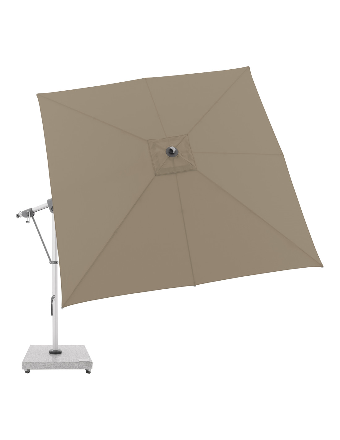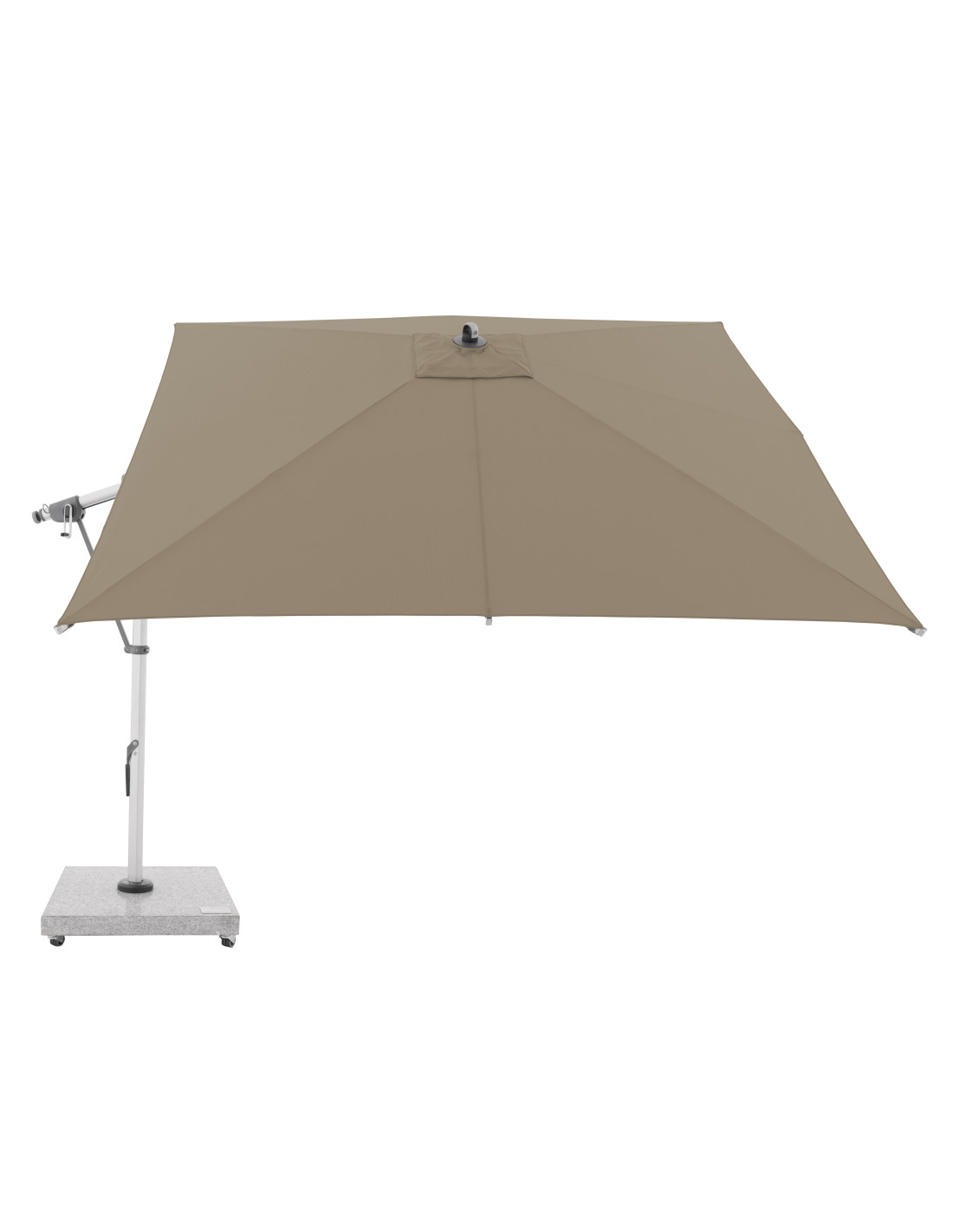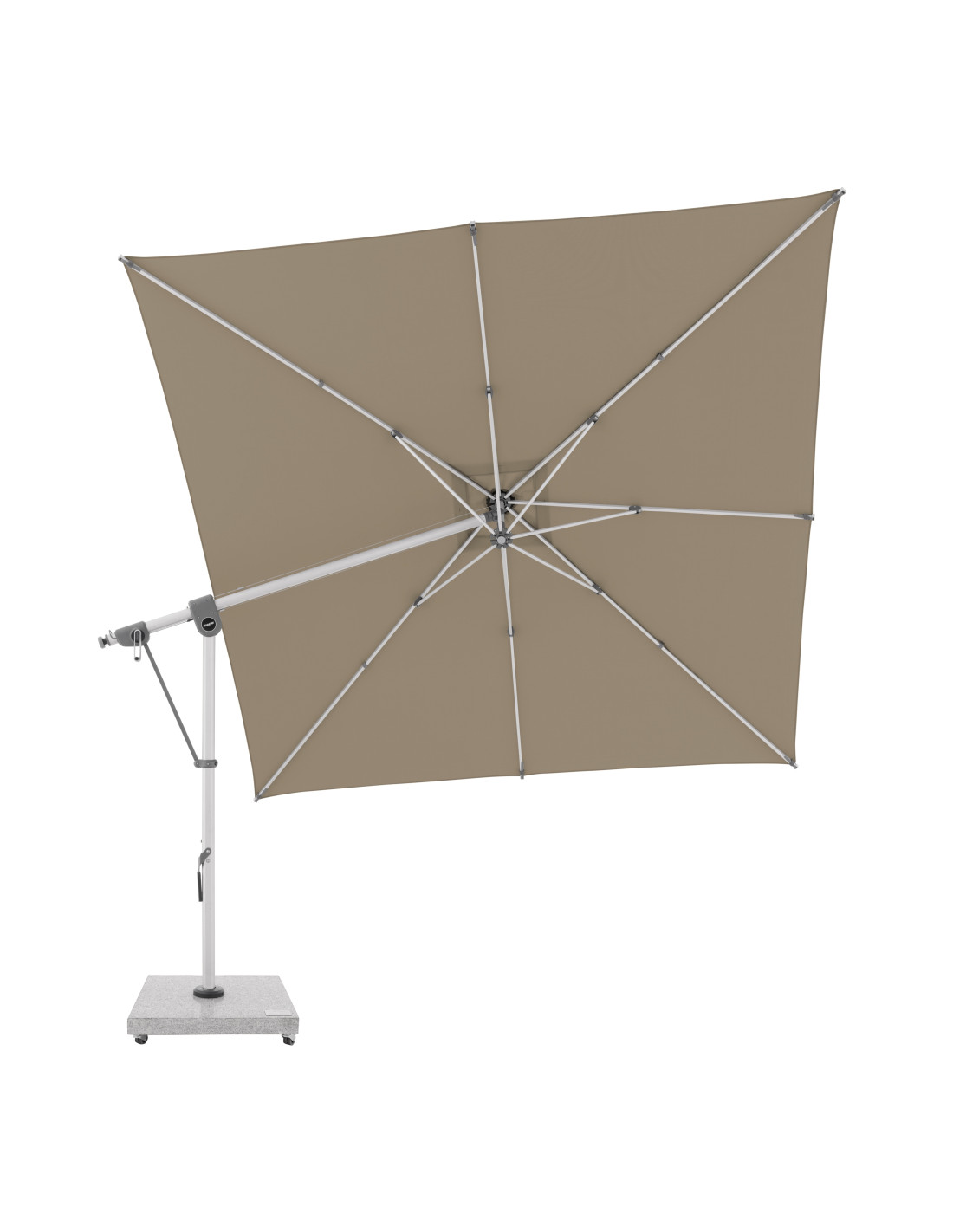 Tento multifunkční slunečník lze optimálně přizpůsobit poloze slunce díky své schopnosti o 360° a oboustrannému bočnímu naklápění střechy. Konstrukce je vyrobena z vysoce jakostního hliníku a všechny díly jsou šroubované. Slunečník má nově vyvinutý ozubený hnací řemen, ten zajišťuje dlouhotrvající a bezproblémový provoz při otevírání a zavírání slunečníku.