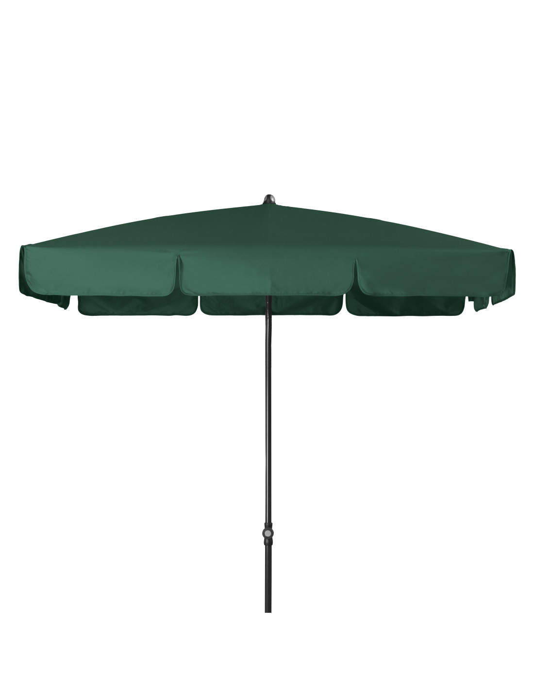 Tento slunečník je ideálním společníkem na balkón či terasu. Rám slunečníku je vyroben z oceli v antracitové barvě s epoxidovou povrchovou úpravou. Komfortní funkce naklápění umožňuje naklopení střechy. Potah je vyroben s kvalitním nepromokavým polyesterovým potahem beze švů, provedení s volánem, který je odolný povětrnostním vlivům s dobrou UV ochranou 80+.