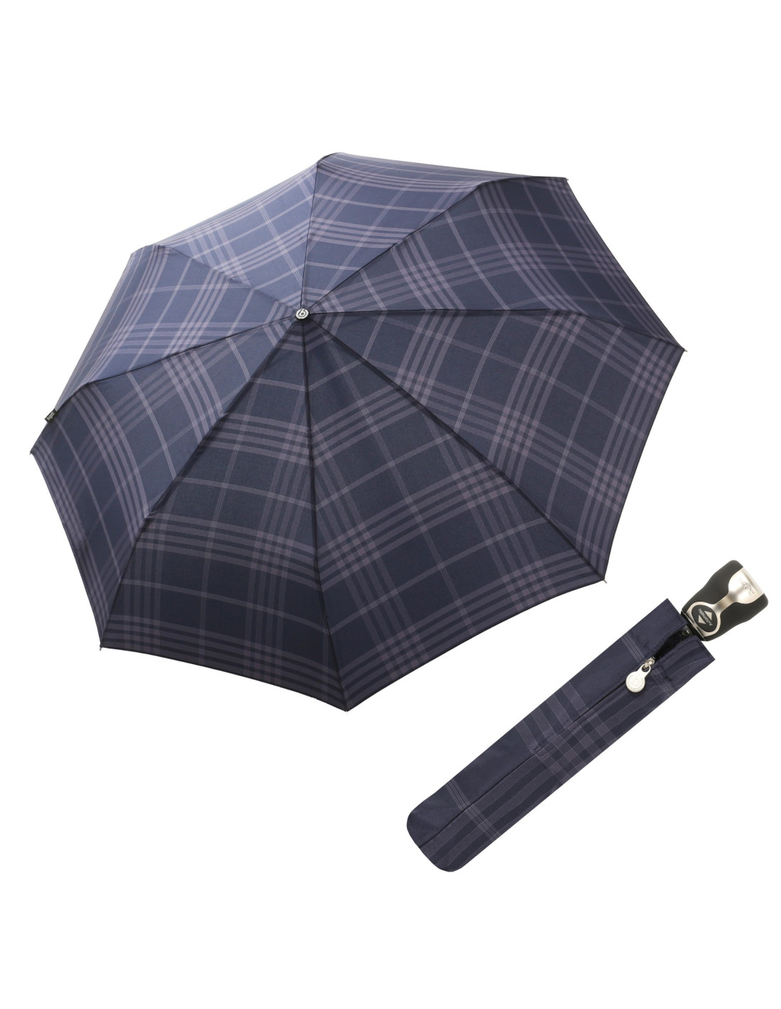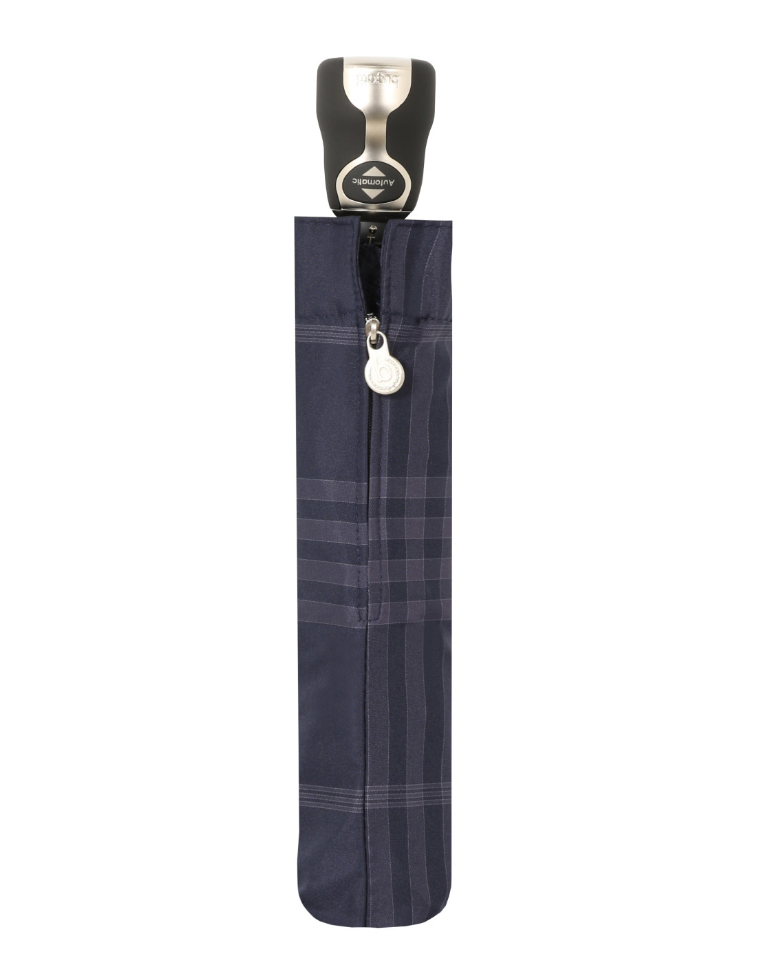 Elegantní pánský plně automatický skládací deštník od trendy značky Bugatti. Konstrukce z hliníku a carbonu. Lehká větruodolná konstrukce. Veliká střecha. Polyesterový potah je odolný proti změnám vlhkosti a teplot, nesráží se. S praktickým obalem na zip.