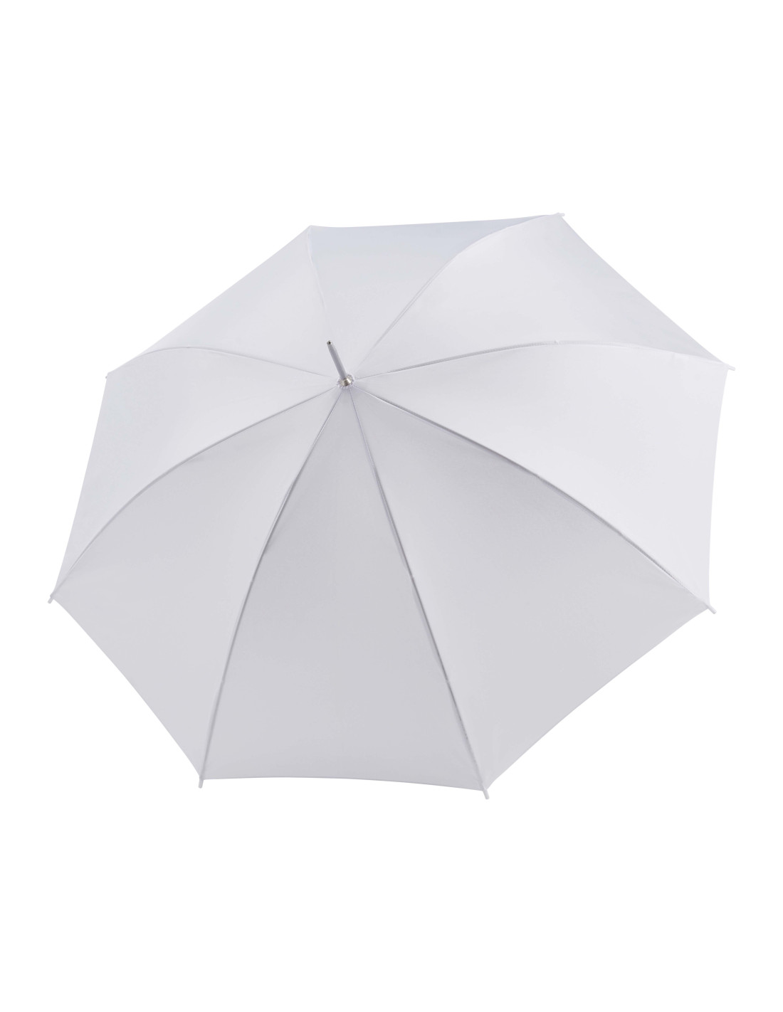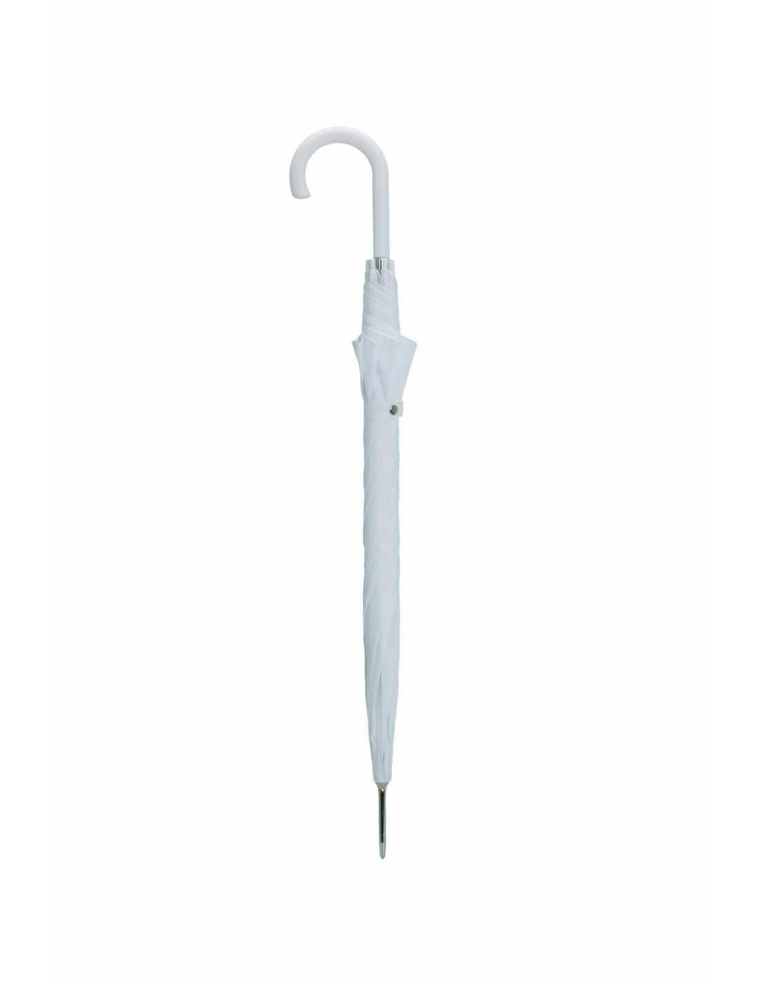 Dámský holový vystřelovací svatební deštník. Velice kvalitní konstrukce z oceli, pevná větruodolná ocelová konstrukce ve stříbrné barvě ladící s bílým potahem deštníku. Veliká střecha. Polyesterový potah je odolný změnám vlhkosti a teplot, nesraží se.