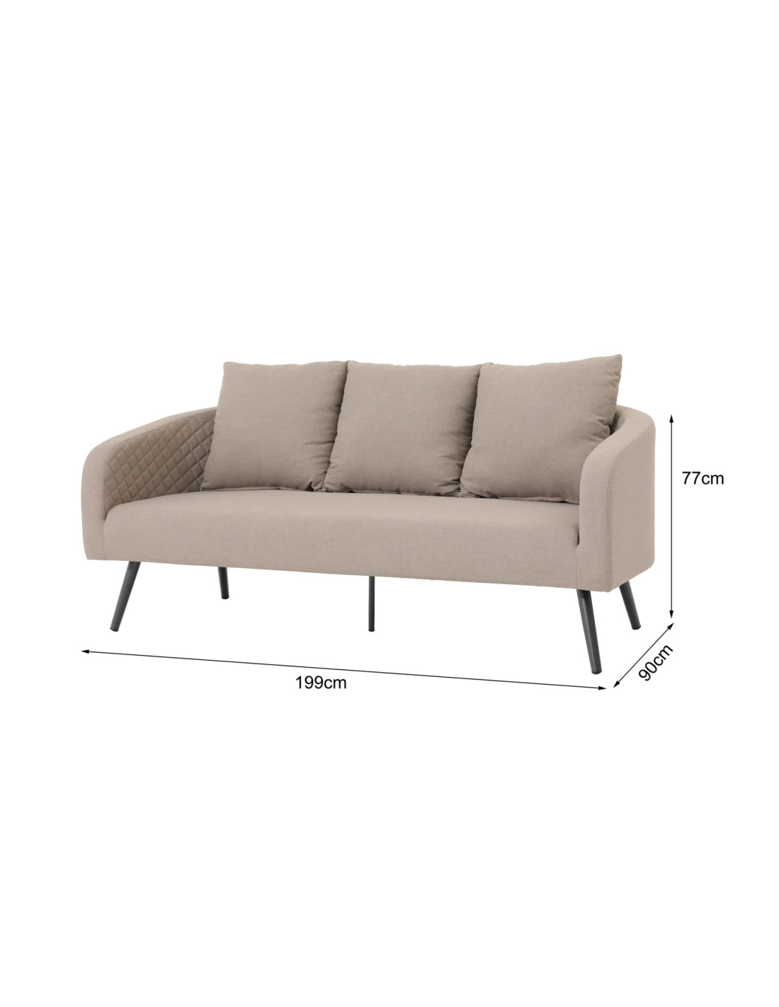 Pohovka Melia je navržena pro maximální komfort – její měkké, vysoké polstrování spolu s opěrnými polštáři a širokými područkami vám zajistí pohodlné sezení, ať už si užíváte chvíle odpočinku nebo trávíte čas s přáteli. Ozdobné prošívání na vnitřní straně opěrky a bocích přidává sofistikovaný vzhled, který se skvěle hodí k modernímu exteriéru i interiéru. Navíc je její údržba velmi jednoduchá – tkanina LIKA-TEX® je nenáročná na čištění a pohovka je dostatečně odolná, aby vydržela i v náročnějších venkovních podmínkách. Pohovka Melia je ideální volbou pro ty, kteří hledají kombinaci stylu, kvality a dlouhé životnosti.