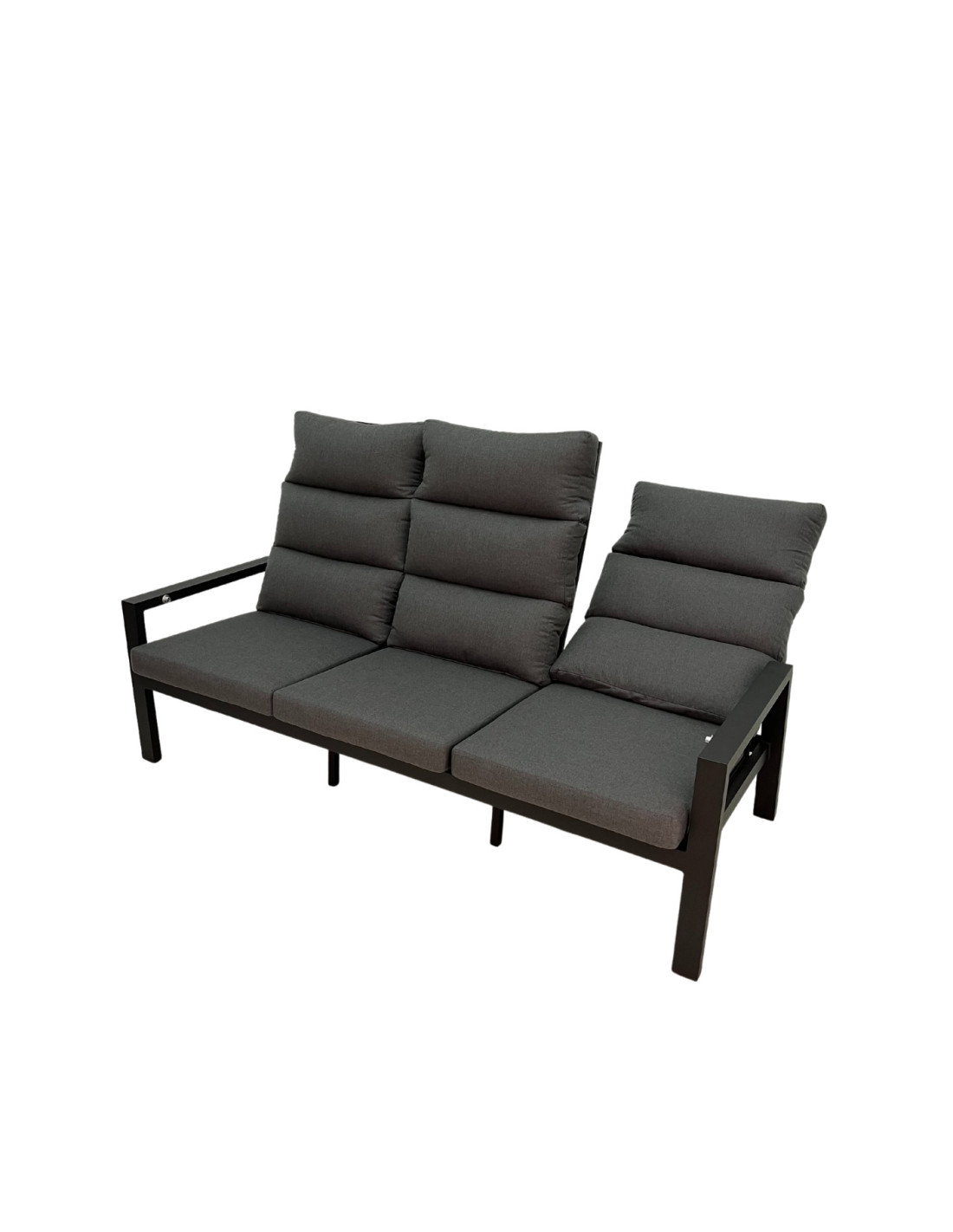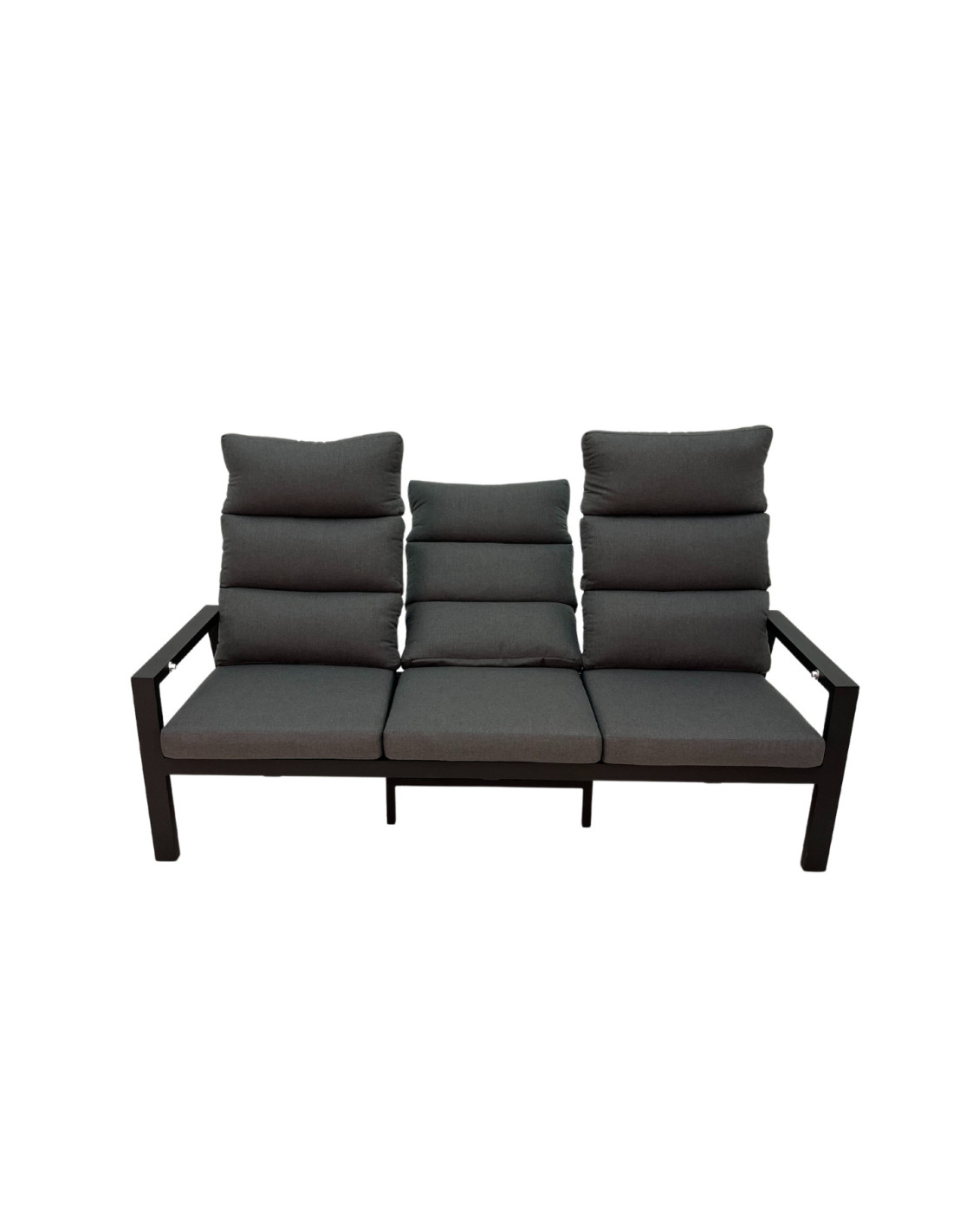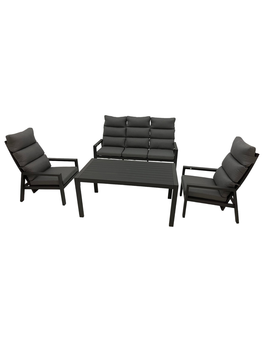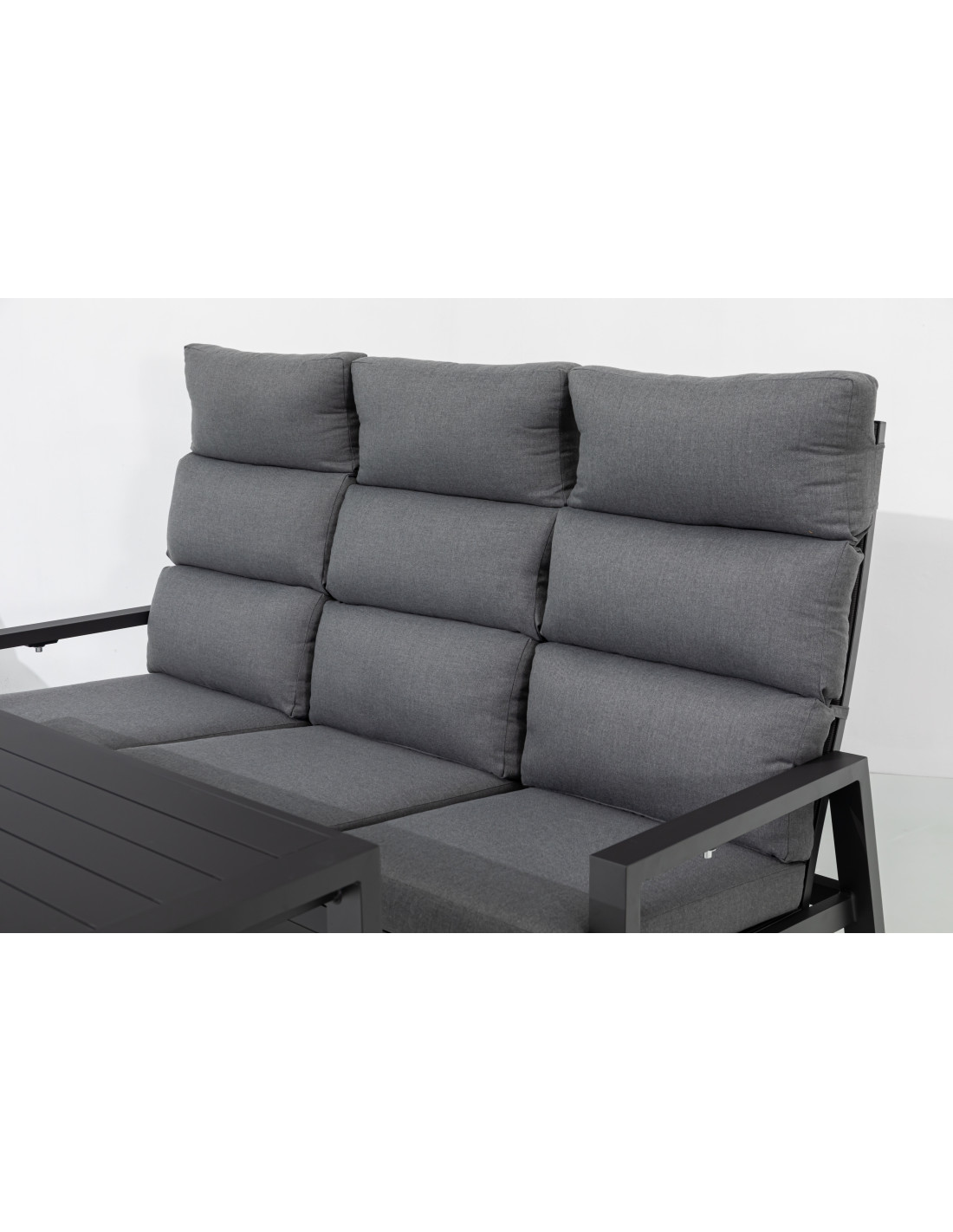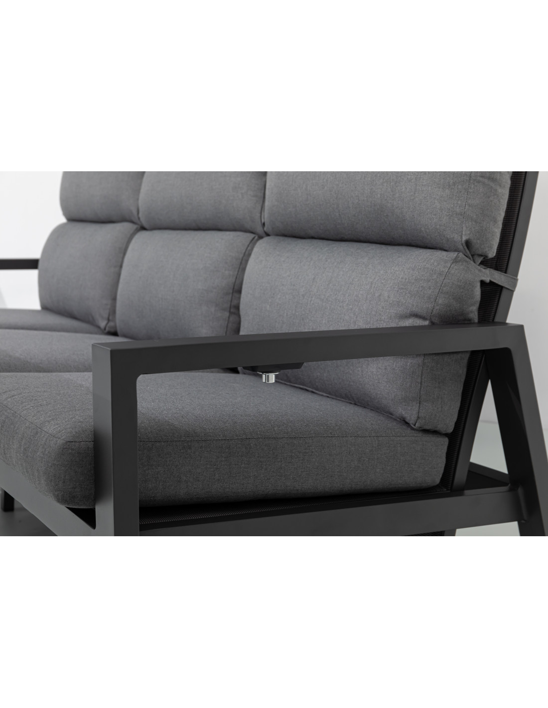 Zahradní sestava SANTINI je multifunkčním řešení pro každého, kdo rád relaxuje na zahradě či terase. Další výhodou je praktická výška stolu 66 cm. U stolu se tedy pohodlně i najíte. Obě křesla mají možností polohování opěrek zad pomocí pístu. Nadýchané polstry mají antracitové potahy ze 100% polyesteru, který je odolný, dobře odolává oděru či vlivům slunečního záření. Polstry jsou na zipy, potah je možné sejmout a vyprat. Samozřejmostí je bezúdržbová a stabilní hliníková konstrukce opatřená ochranným práškovým nástřikem v antracitové barvě, jejíž lehkost jistě oceníte vždy, když budete chtít sestavu přemístit.